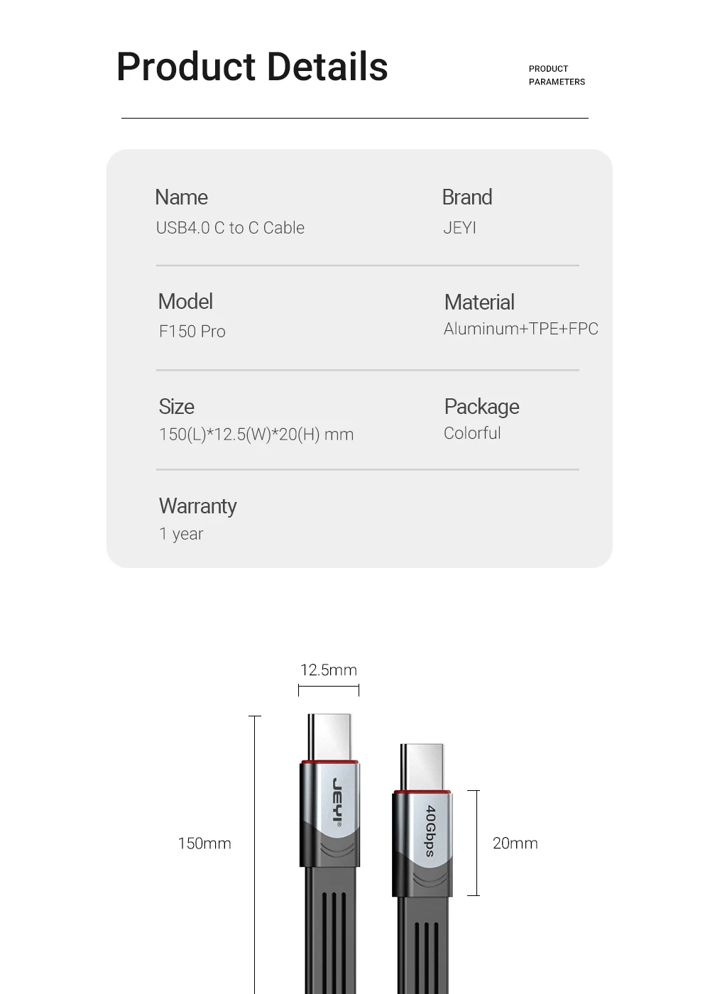 Comprar JEYI-Cable de transferencia de datos F150Pro, USB 4,0, tipo C, 40gbps, PD100W, carga de energía, Thunderbolt4/3, Compatible con dispositivos USB-C y USB4