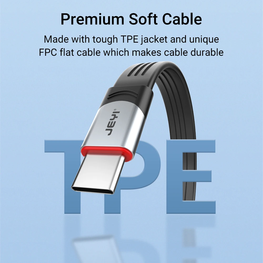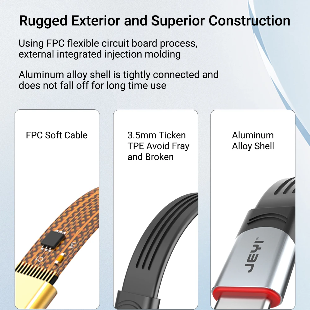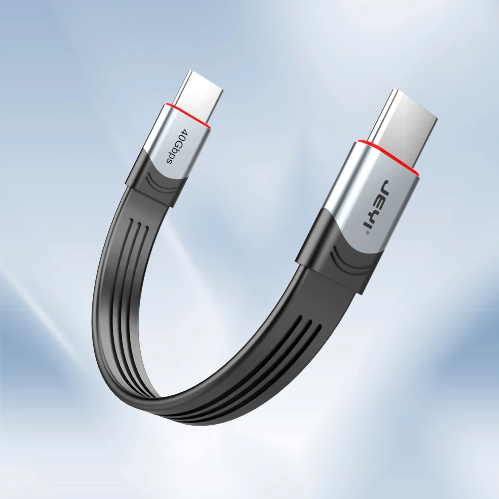 El cable JEYI USB4 tipo C más nuevo, diseñado para optimizar su espacio de trabajo y ofrecer un rendimiento excepcional. Este cable plano reduce el desorden y proporciona conectividad plug and play para dispositivos de USB-C sin pérdida de señal. Con un chip marcado electrónicamente, el cable también es seguro para cargar.