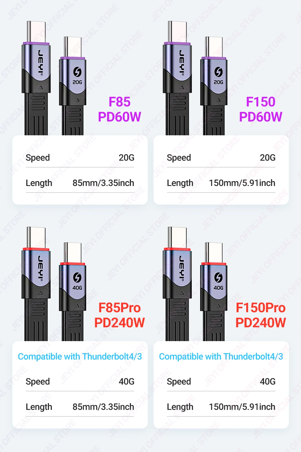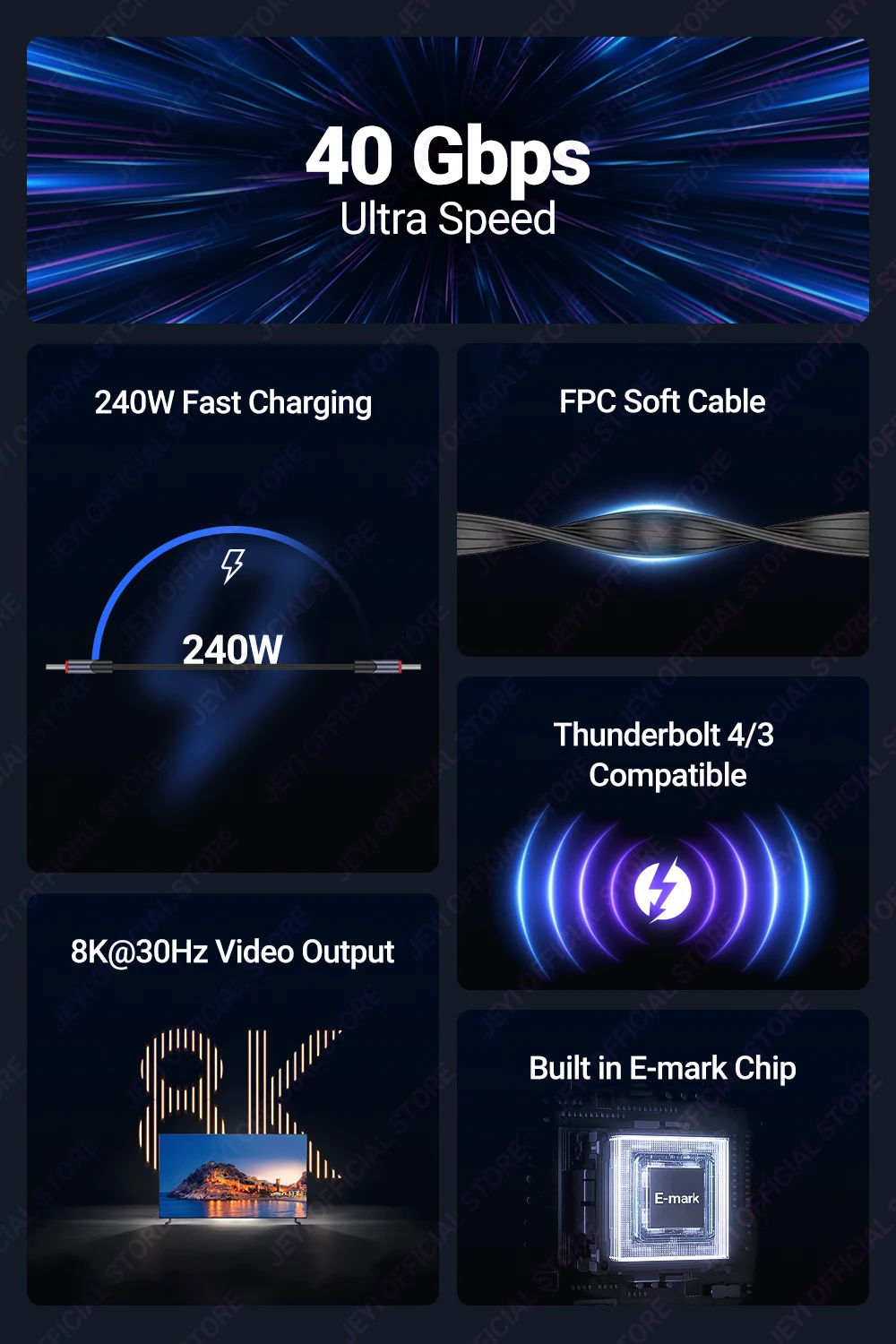 Serie de cables de datos de alta velocidad JEYI USB 4.0 - Transmisión de 40 Gbps/carga rápida de 240 W/soporte de vídeo 8 K