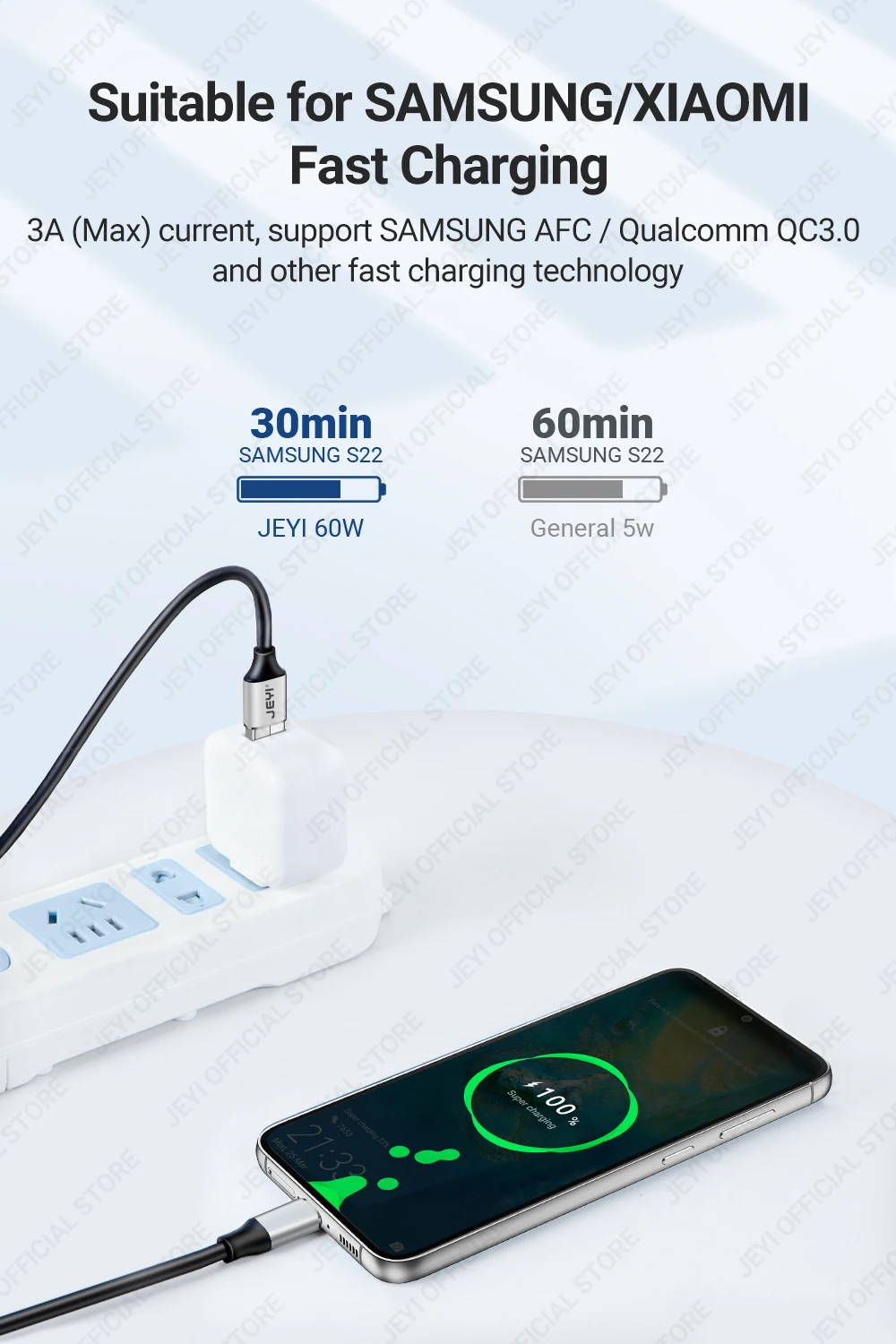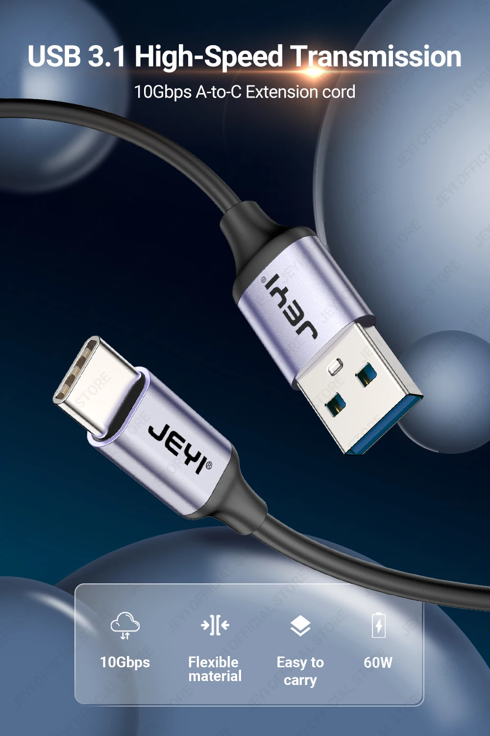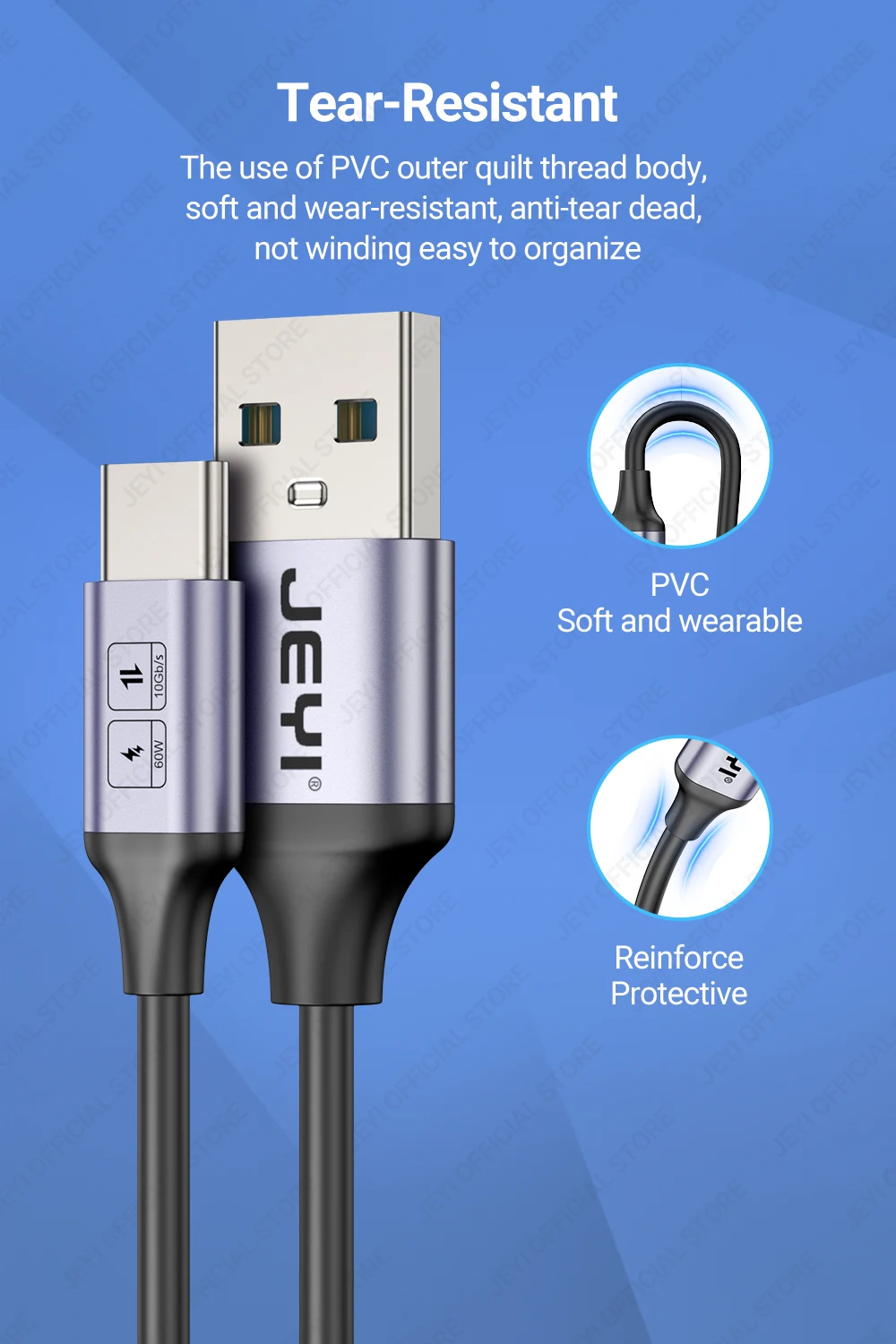 Comprar JEYI Cable USB A a tipo C 60W carga rápida Cable de datos de 10Gbps cargador USB para Samsung Xiaomi HTC Redmi Huawei USB-C de teléfono móvil