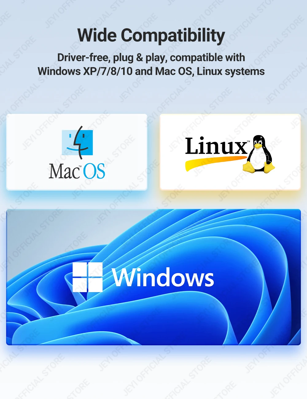 Sin controladores, plug & play, compatible con Windows XP/7/8/10 y Mac OS, sistemas Linux