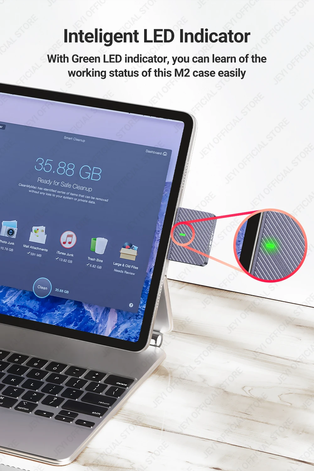 Con indicador LED verde, puede conocer el estado de funcionamiento de esta carcasa M2 fácilmente