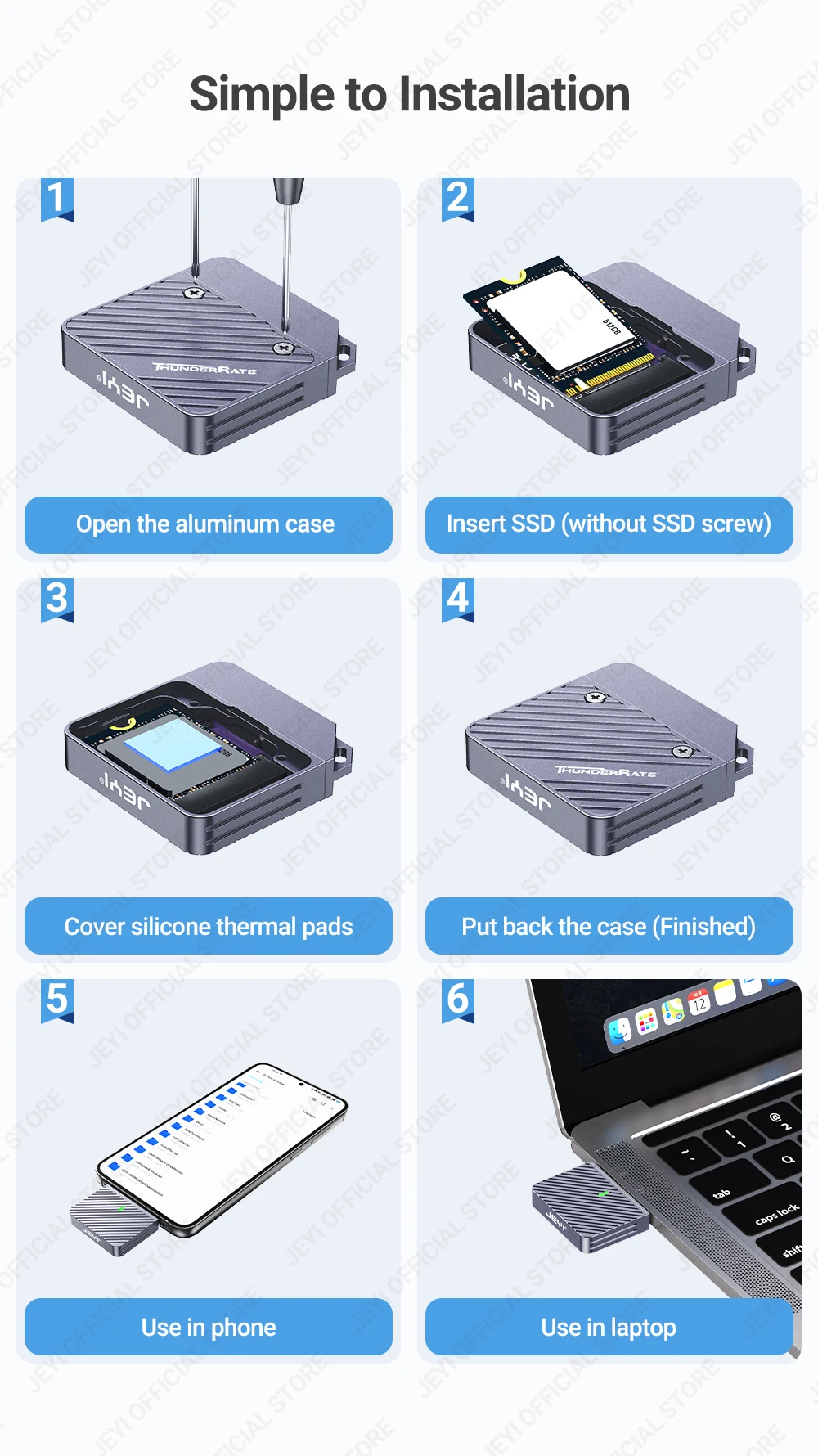 Comprar JEYI-carcasa SSD de fijación directa NVMe, unidad de estado sólido de aluminio en línea con USB 2230, 10Gbps, 3,2 M.2