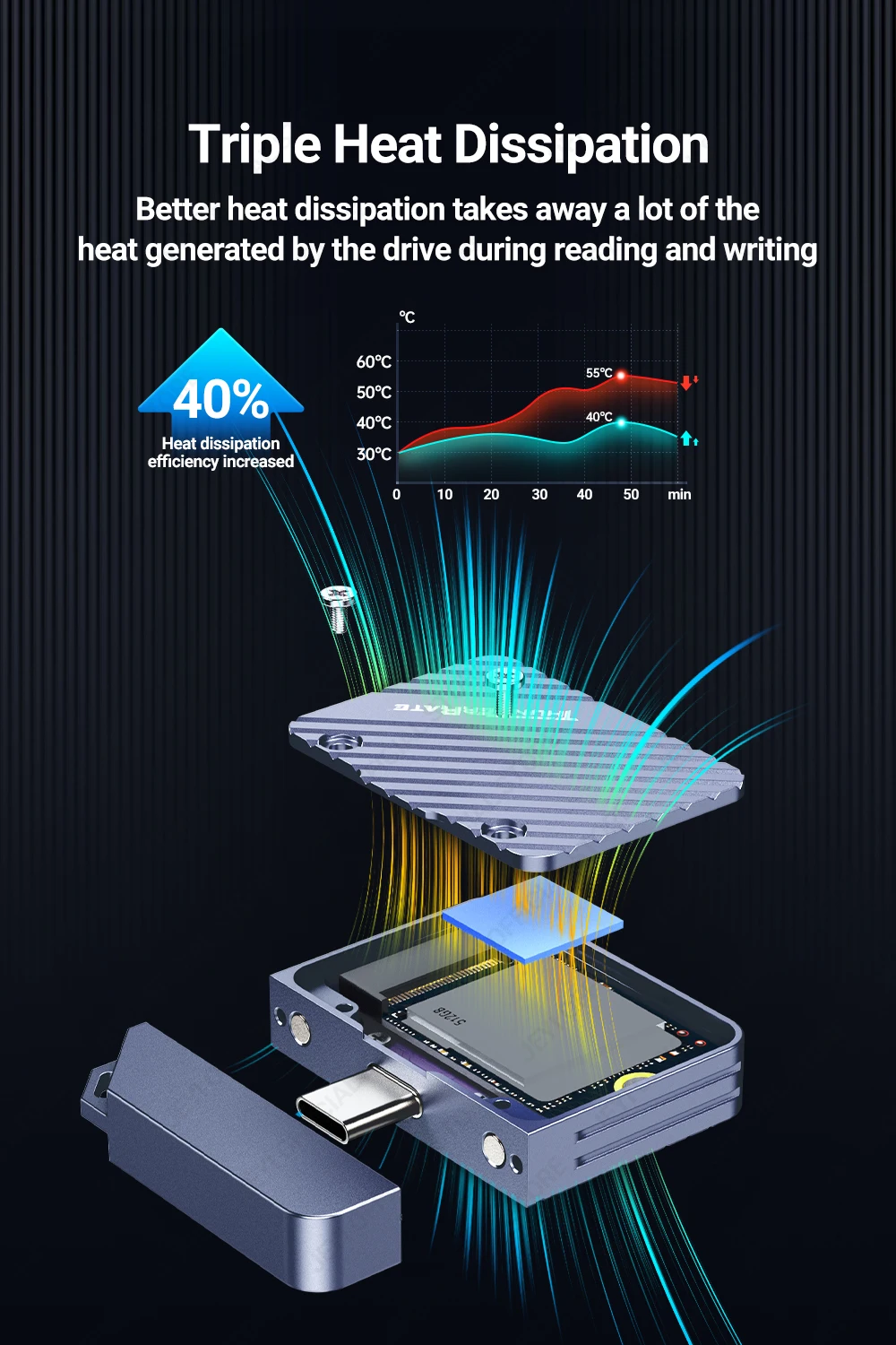Una mejor disipación del calor elimina gran parte del calor generado por la unidad durante la lectura y la escritura