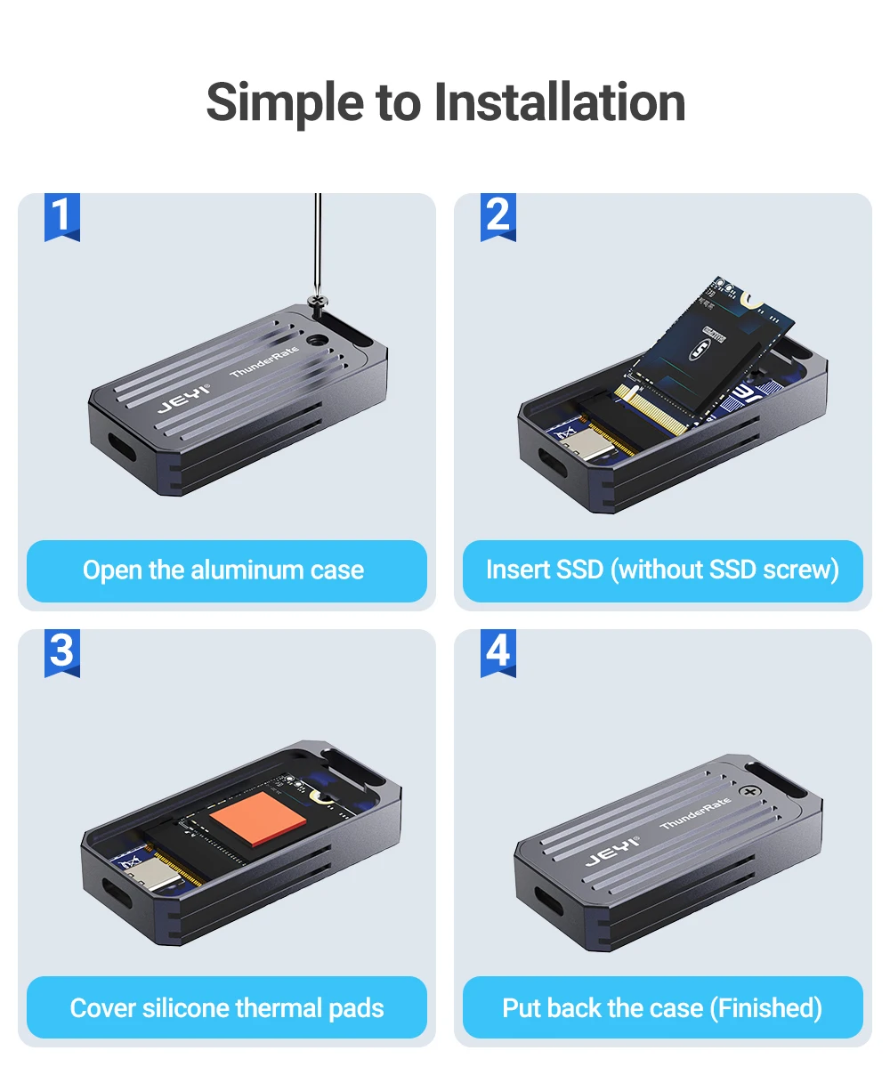 • Diseño portátil :Con su diseño compacto y liviano, El JEYI 2230 NVMe SSD Enclose es fácil de llevar sobre la marcha, lo que lo hace perfecto para viajes o trabajo remoto.