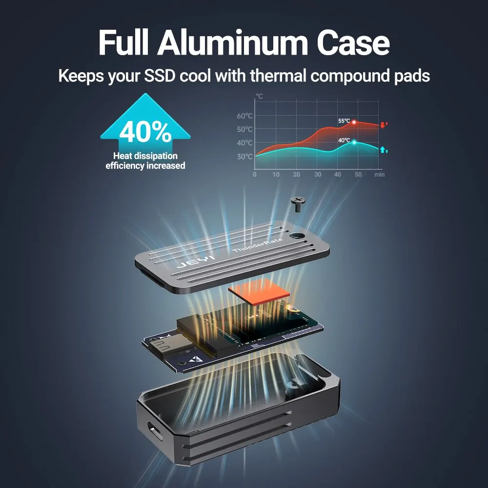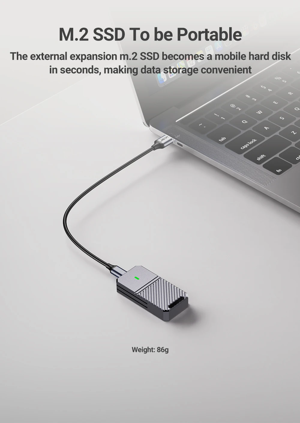 • SSD NVMe :El JEYI 2230 NVMe SSD Enclose cuenta con una unidad de estado sólido de alto rendimiento que ofrece velocidades de transferencia de datos ultrarrápidas.