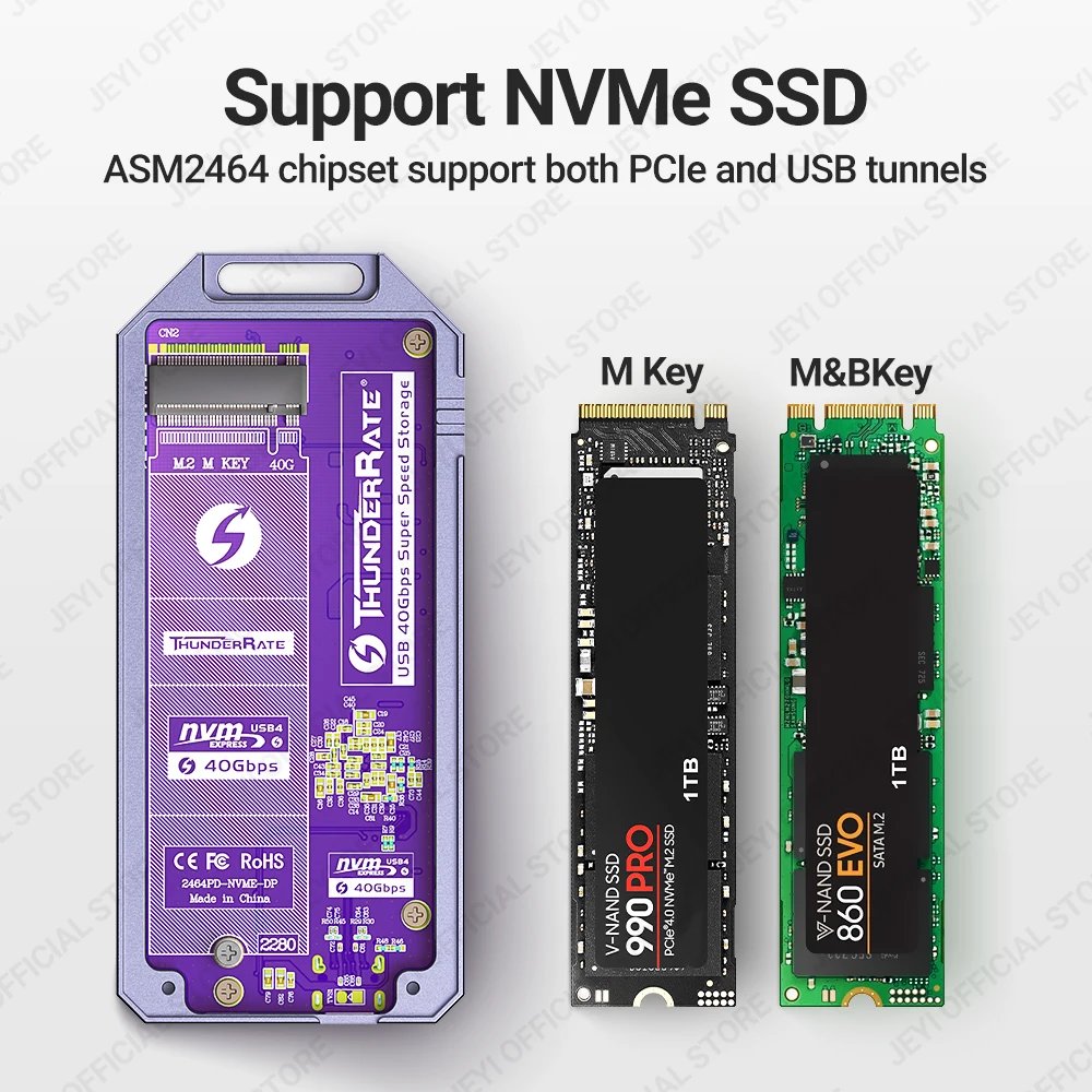 Comprar JEYI-carcasa de unidad de estado sólido M2 a tipo c 4,0, carcasa de SSD NVMe de 40Gbps, USB 4,0 M.2, Compatible con Thunderbolt 4/3, USB 3,2/3,1/3