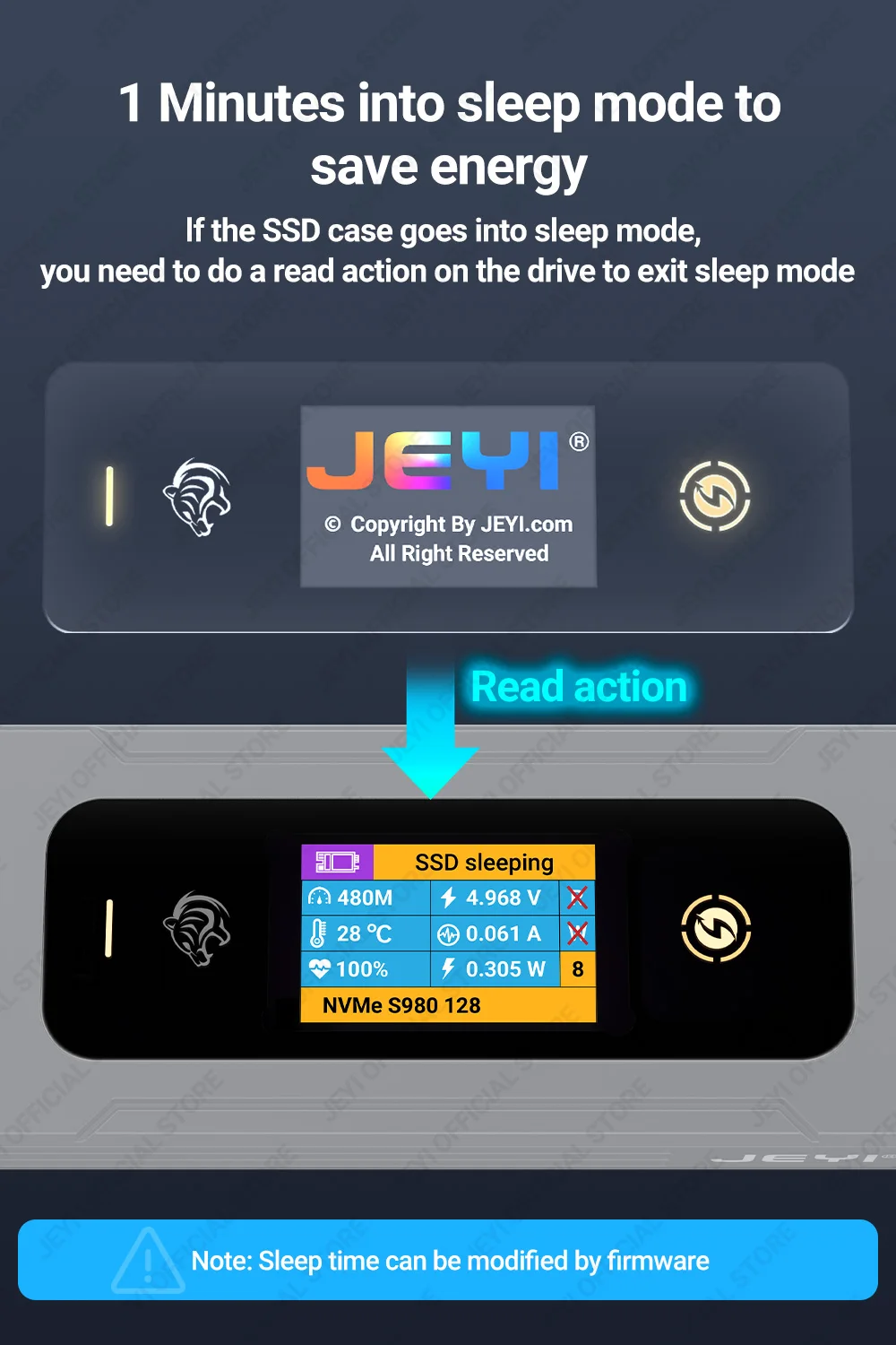 Si la carcasa de la SSD entra en modo de suspensión, debe realizar una acción de lectura en la unidad para salir del modo de suspensión.
