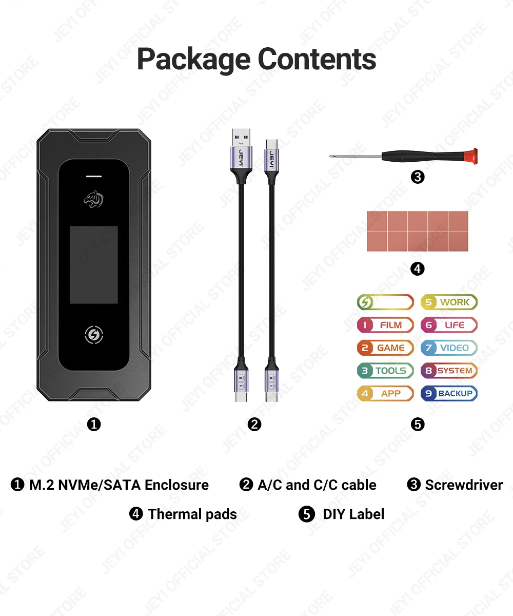 La carcasa del disco duro externo JEYI no es solo almacenamiento; es una fortaleza de datos. Elaborado con precisión e innovación, es la protección ideal para sus valiosos archivos, con un elegante exterior de aluminio, una pantalla a color inteligente y una compatibilidad versátil. Diga hola al futuro del almacenamiento y la seguridad de datos.