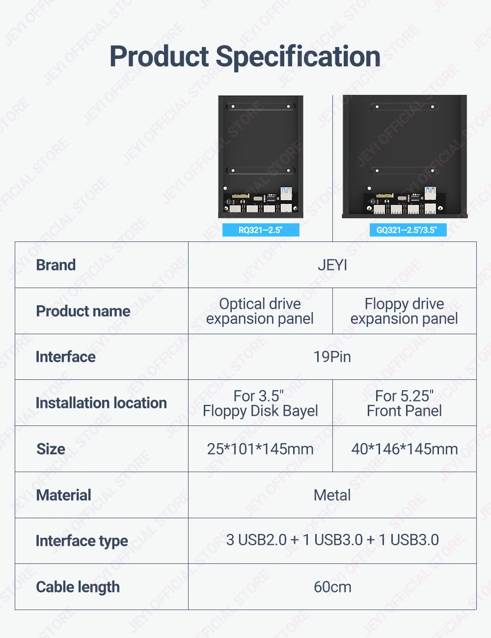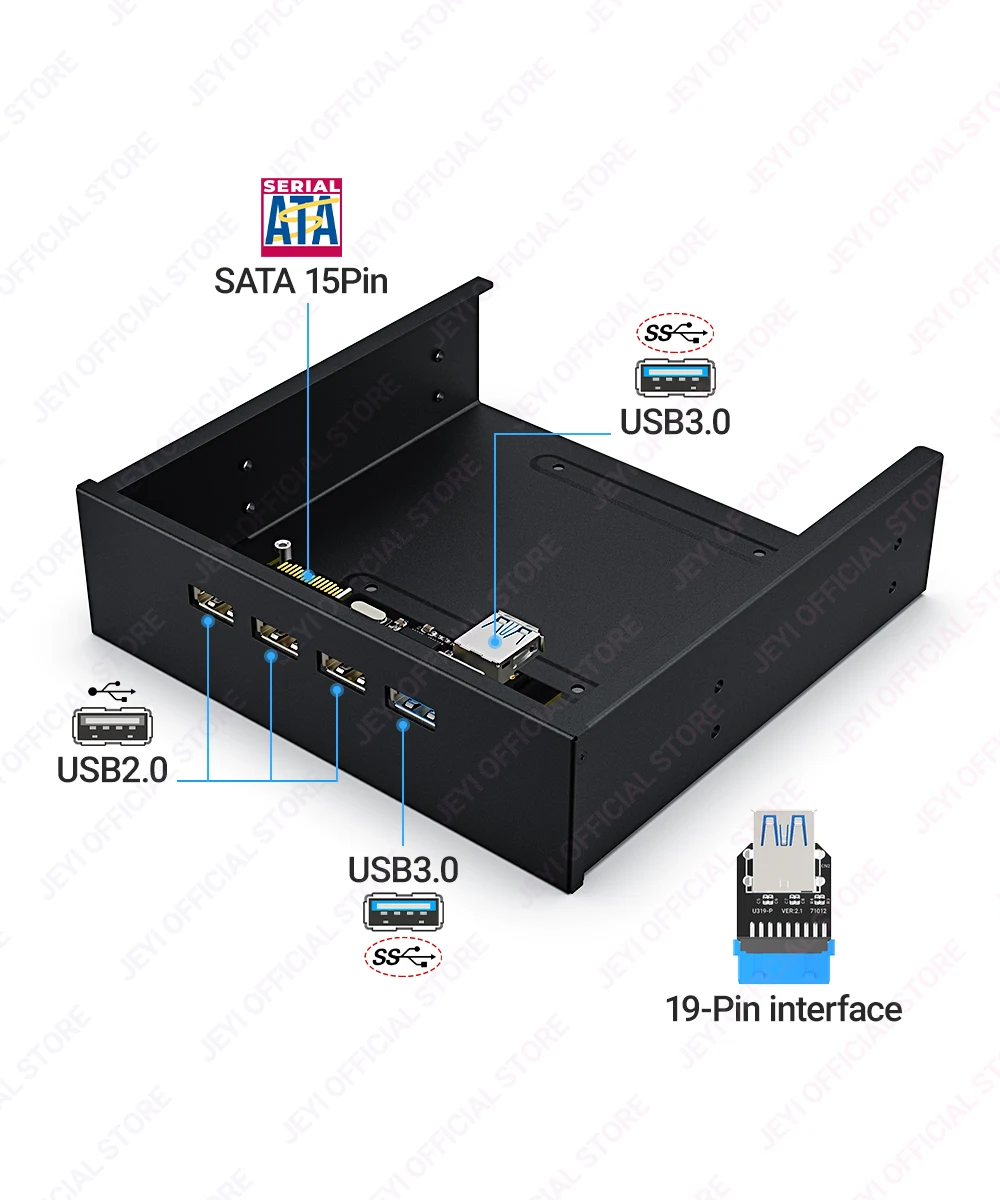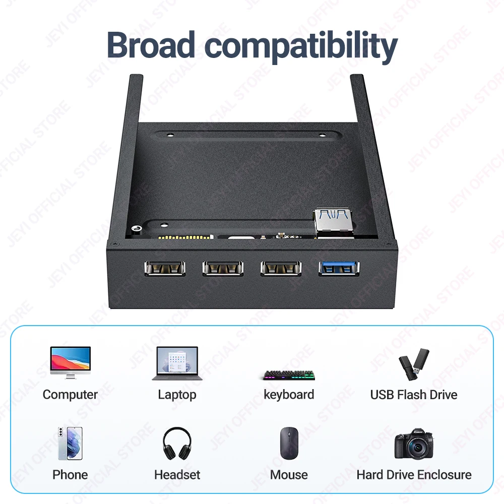 Comprar JEYI-concentrador de Panel frontal USB 3,0, Unidad óptica, Panel frontal de 5,25 "/3,5", Bahía de disco flexible, compatible con USB 3,0/2,0, SATA HDD para ordenador HD