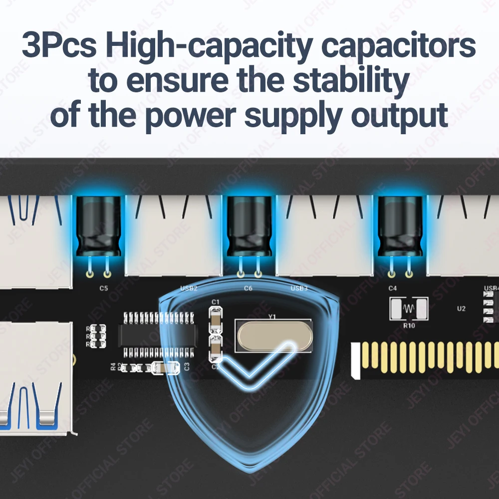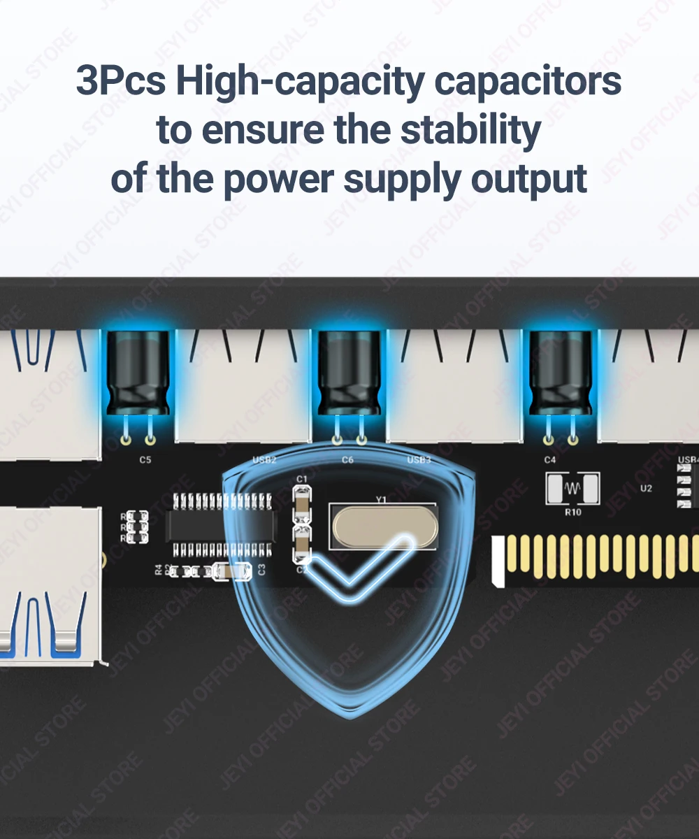 Conectividad mejorada: cada puerto incluye condensadores robustos que garantizan una transmisión de datos segura y un funcionamiento fiable, protegiendo contra la pérdida de datos durante las transferencias.