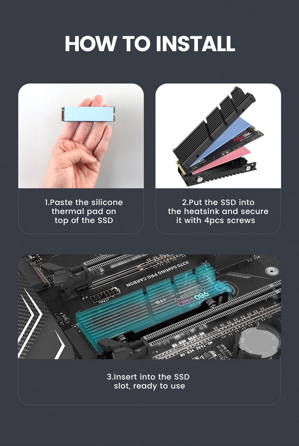 【Diseñado para computadoras de escritorio 】: el disipador térmico JEYI M.2 SSD tiene compatibilidad de alta calidad. Apto para Samsung 860 EVO, 960 EVO, 970 EVO, 970 Pro,980 EVO, 980 Pro, etc.