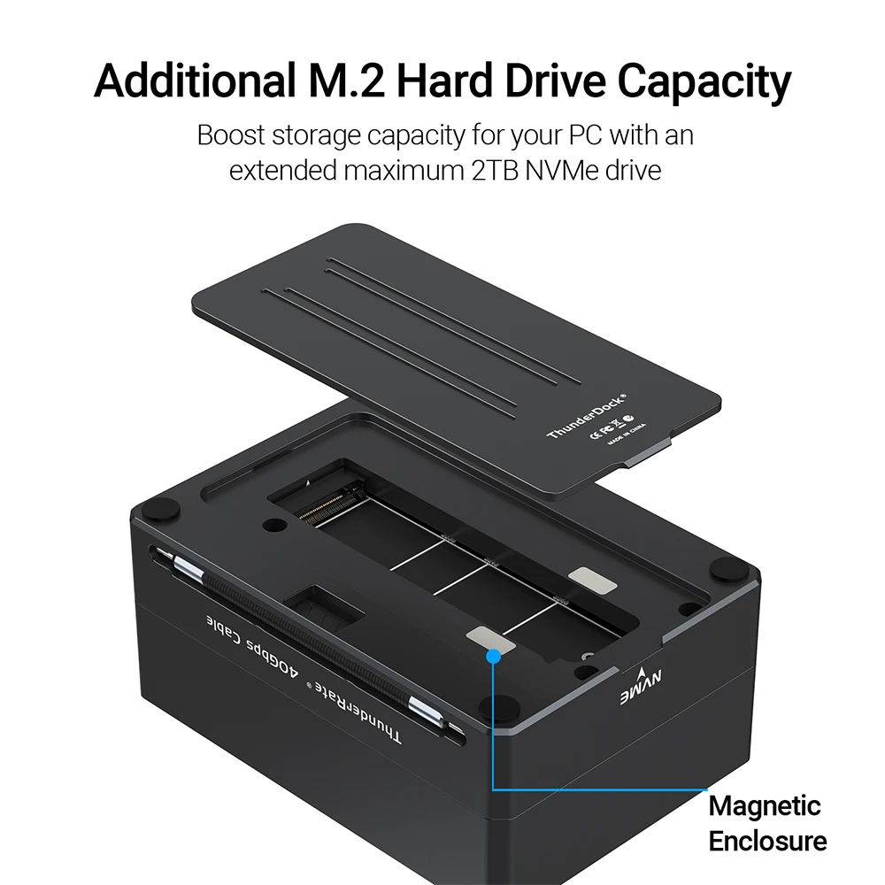 Agregar un SSD NVMe adicional con una capacidad máxima de 2TB es como agregar una carcasa de disco duro extraíble más grande. No es necesario desenchufarlo cada vez que lo use, simplemente conéctelo a la interfaz del host para leer rápidamente los datos del SSD para que pueda colocar documentos grandes en la estación de acoplamiento sin ocupar espacio de almacenamiento interno en su computadora, ¡Libera al máximo la capacidad de trabajo de tu ordenador! No es solo una estación de acoplamiento, también es una estación de almacenamiento