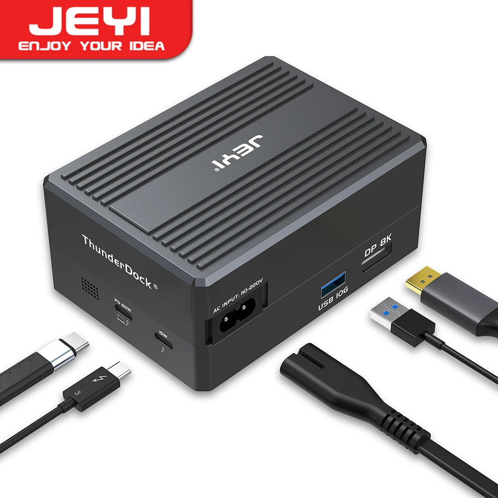 Comprar JEYI-estación de acoplamiento GaN Thunderbolt 3, 8 en 1, Dual Thunderbolt 3, expansión NVMe M.2, 8K DP, 60W PD, USB-A, 10gbps
