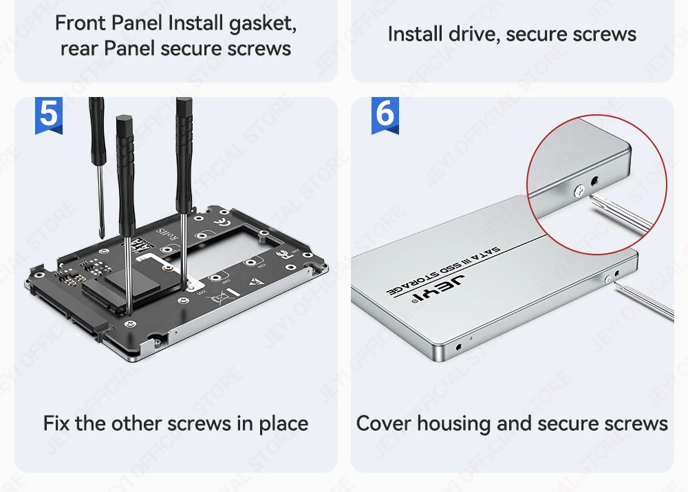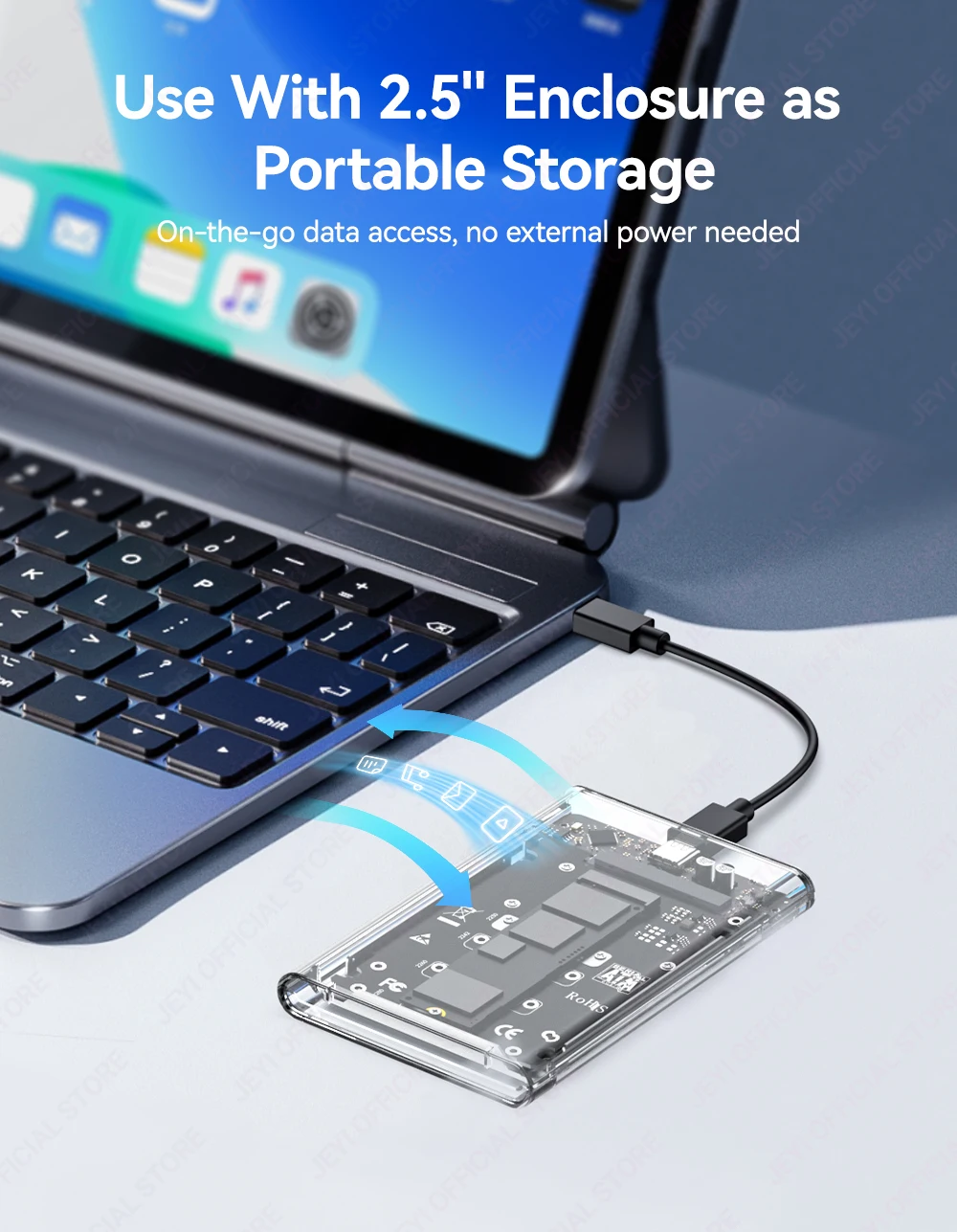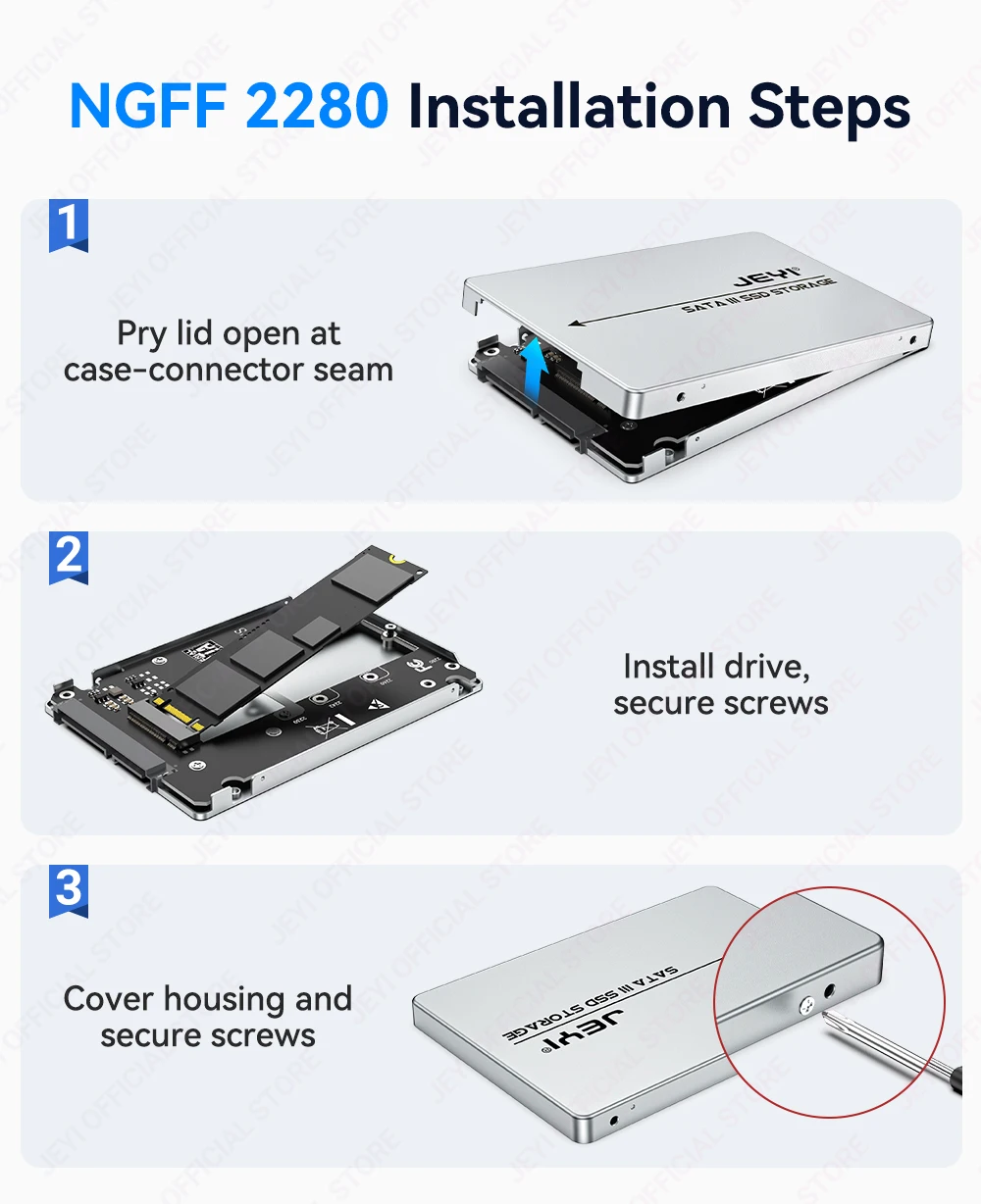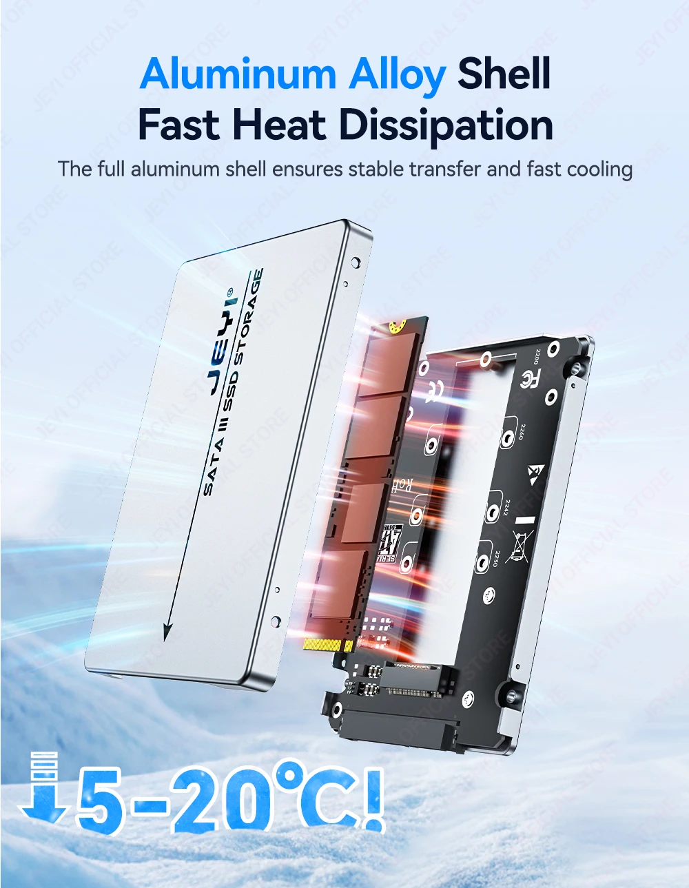 La carcasa de disco duro JEYI M.2 a SATA admite tamaños 2230/42/60/80| Disipación de calor de aleación de aluminio.| 6 Gbps de alta velocidad| Expansión de 2 TB| SSD móvil portátil
