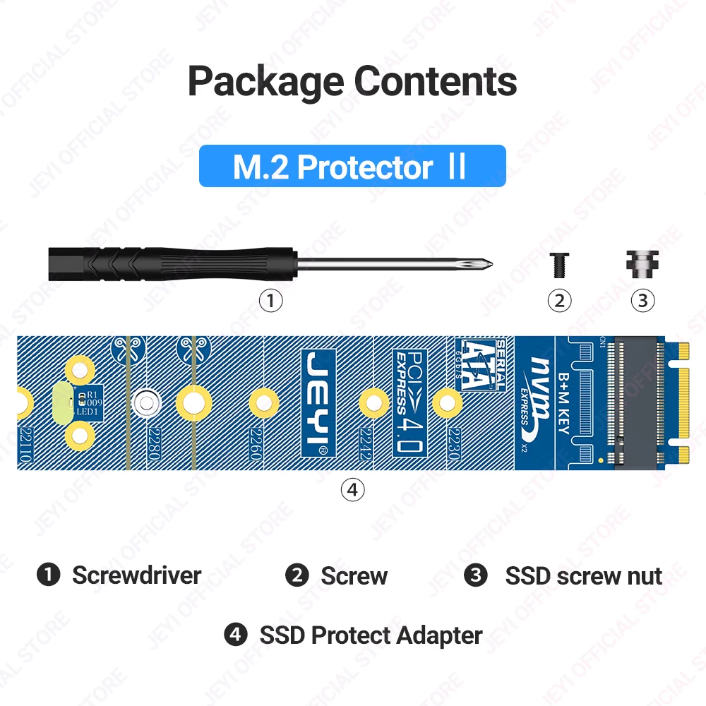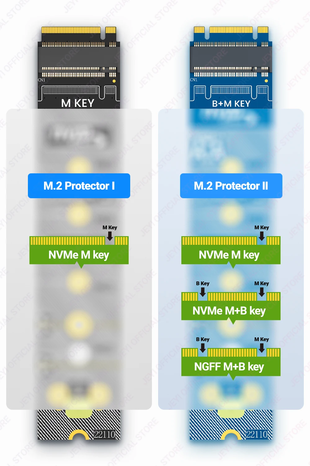 Protector II: Versatility at its best! Compatible with M-key NVMe and M+B Key NVMe/SATA drives. Achieve a maximum SATA speed of 6Gbps, though note that NVMe transfers are limited to PCIe X2, offering half the speed. Confirm your requirements before making a purchase.