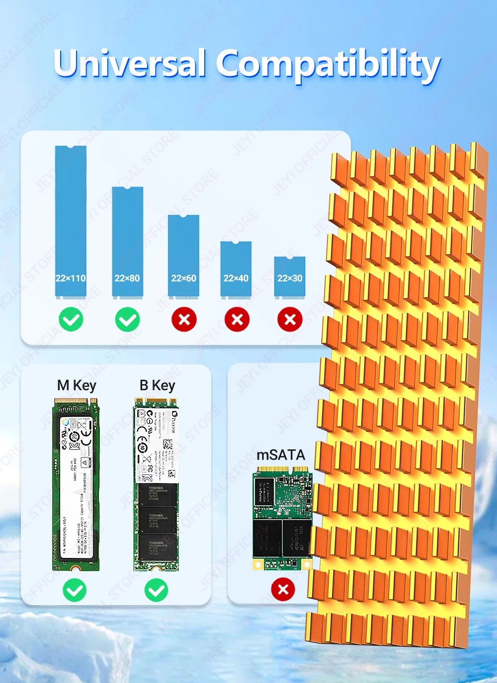 Amplia compatibilidad: nuestros disipadores de calor se adaptan a SSD M.2 (22 x 80 mm) y son compatibles con una variedad de tipos de SSD, incluidos M.2 NVMe, NGFF y más.