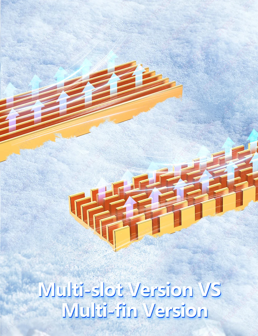Múltiples versiones: Ofrecemos dos versiones para adaptarse a diferentes preferencias: Multi-Fin y Multi-Slot, cada una disponible en 3 mm y 6 mm de grosor.Seleccione la mejor versión para sus requisitos de refrigeración.