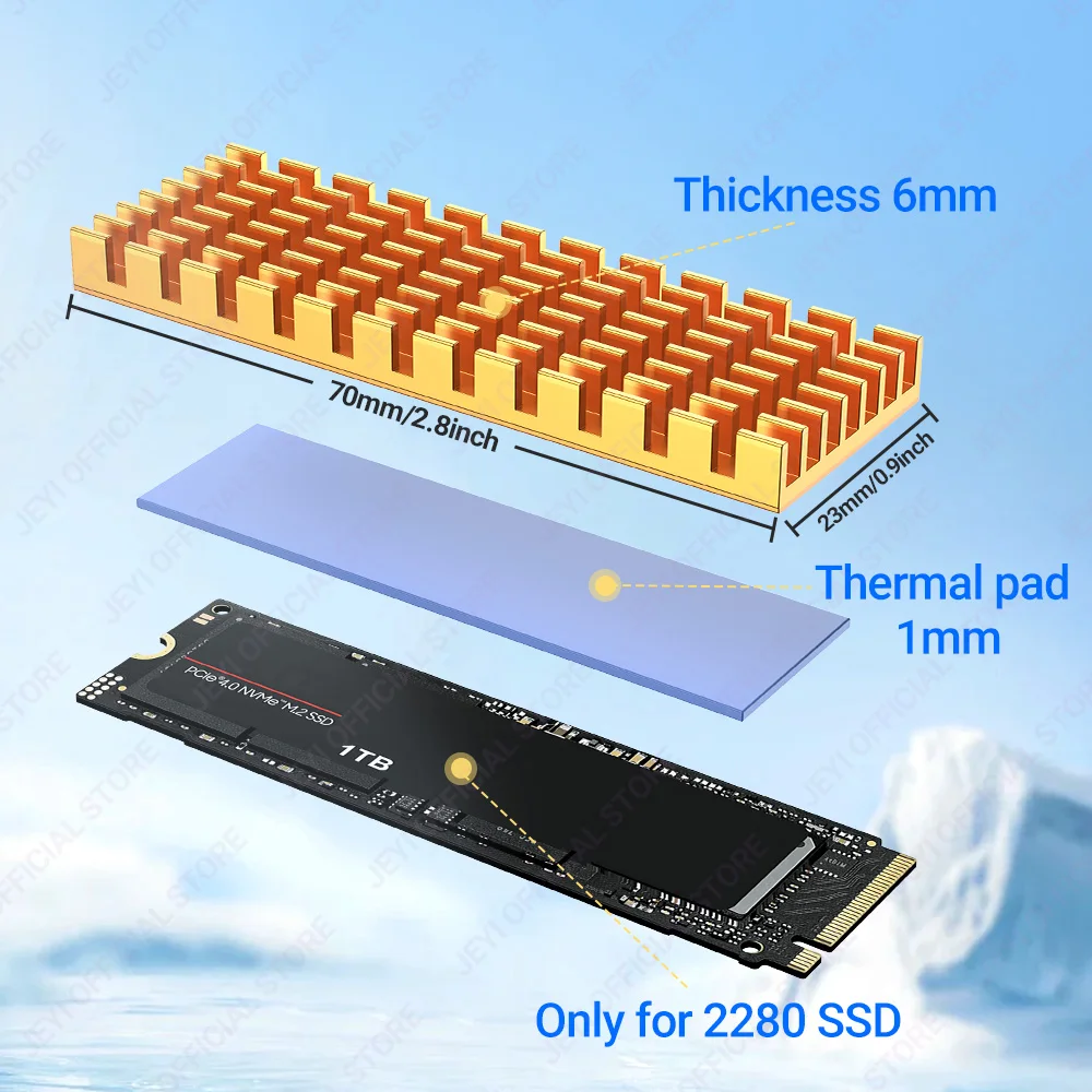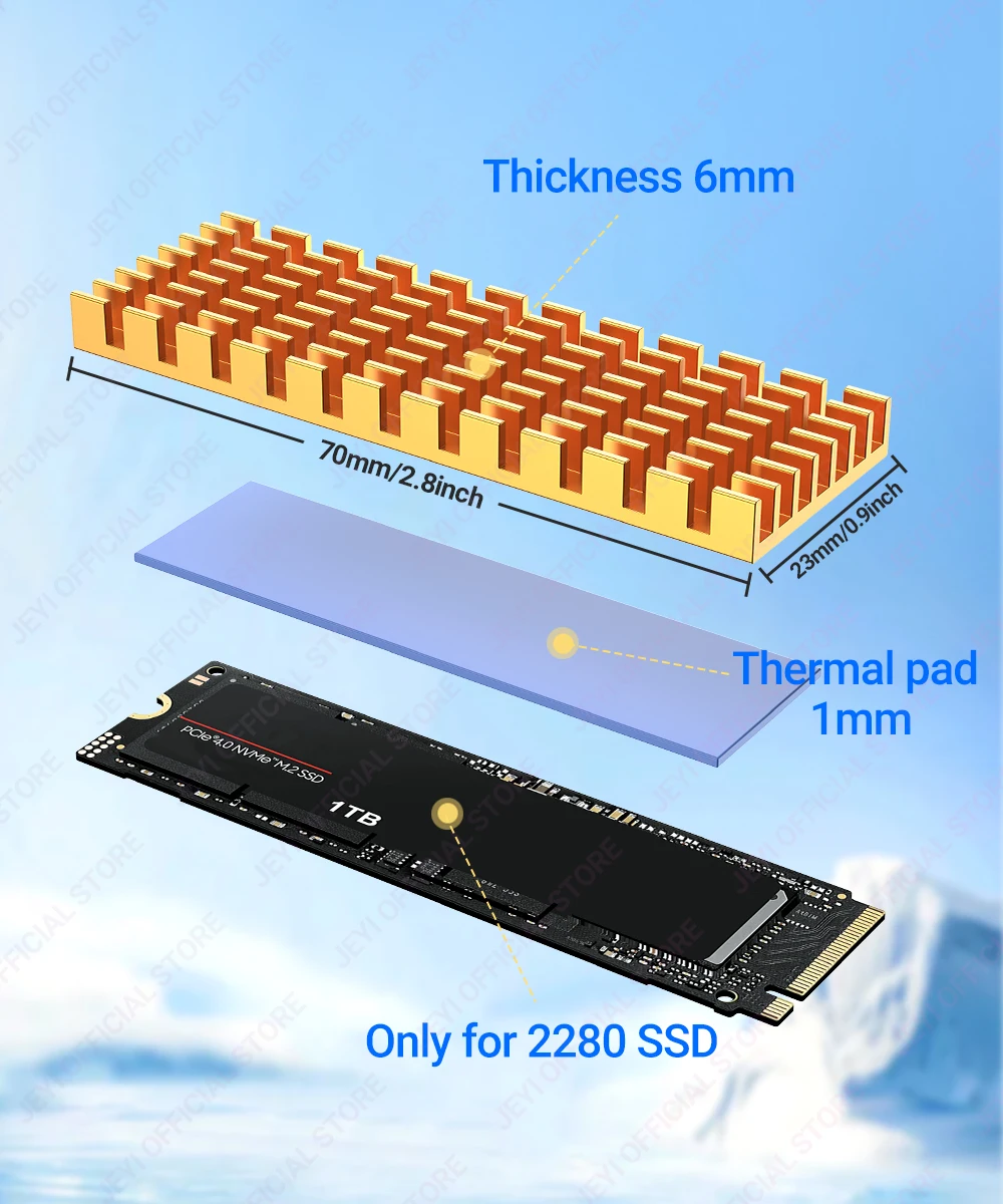 Comprar JEYI M.2 SSD disipador de calor enfriador de aluminio radiador NVMe multiversión con almohadilla térmica, papel antipolvo para PS5/PC/portátil M2 2280 SSD