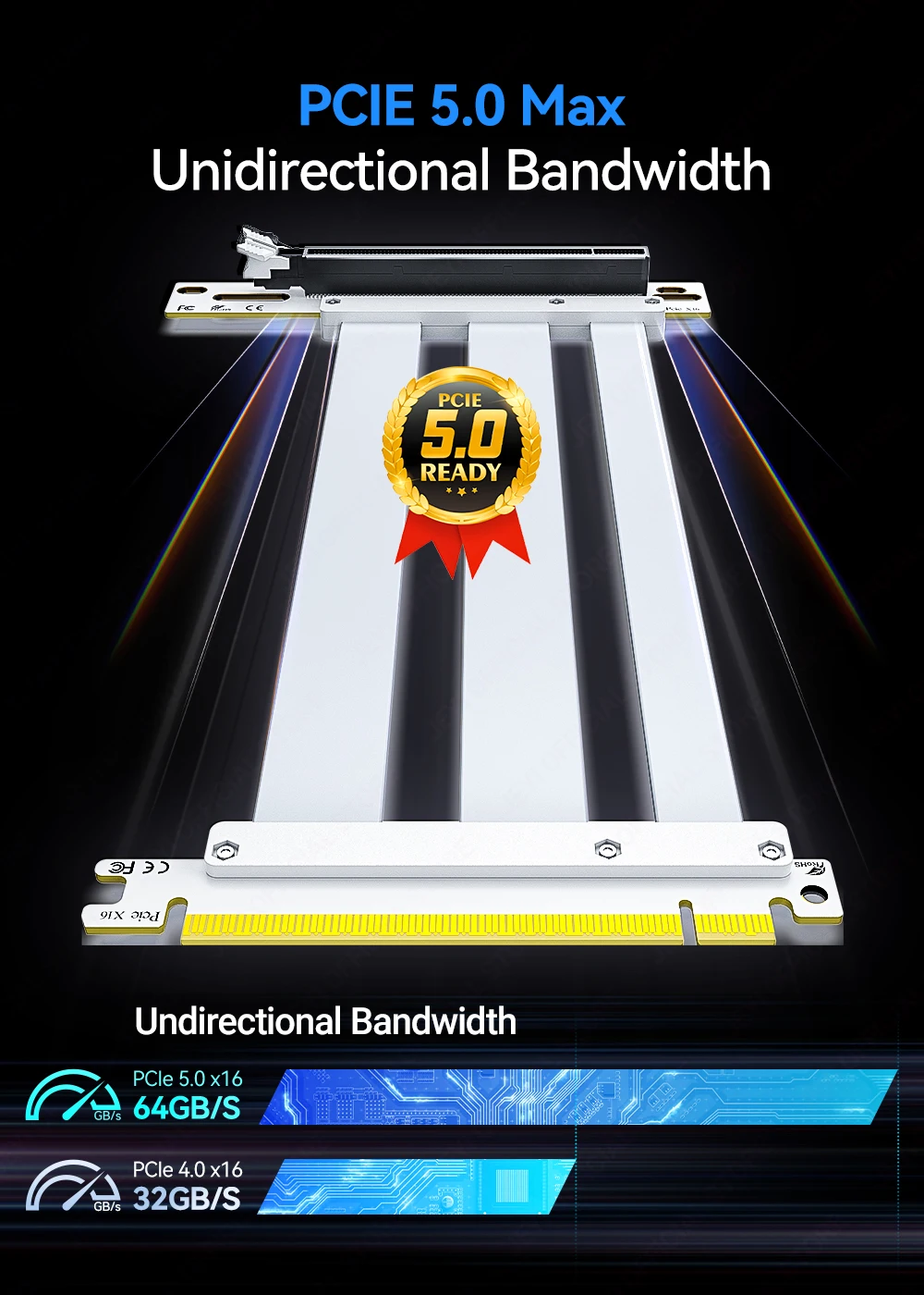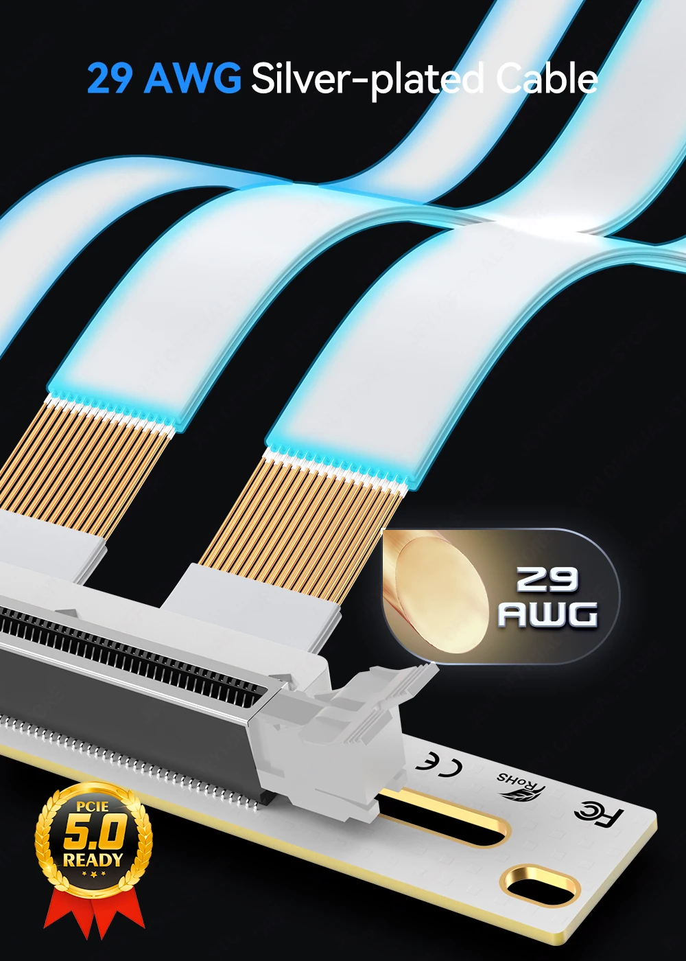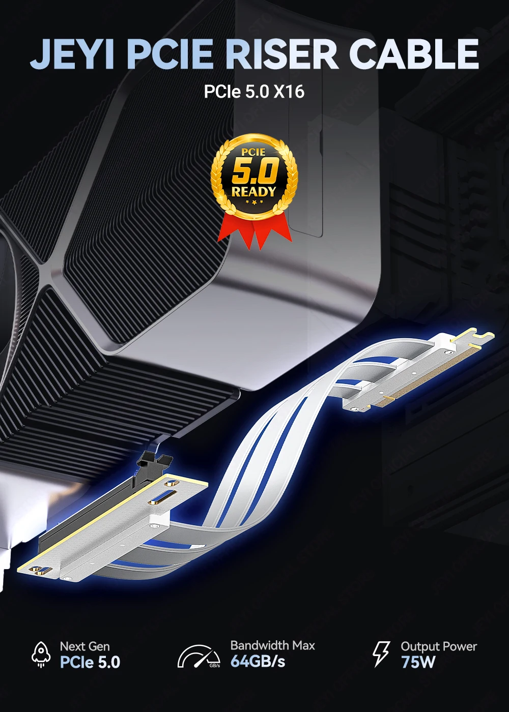 Cable elevador JEYI PCIe 5.0 X16 - Solución de extensión GPU de próxima generación para RTX 5090/5080, plataforma de minería, 15 cm/18 cm/20 cm/30 cm