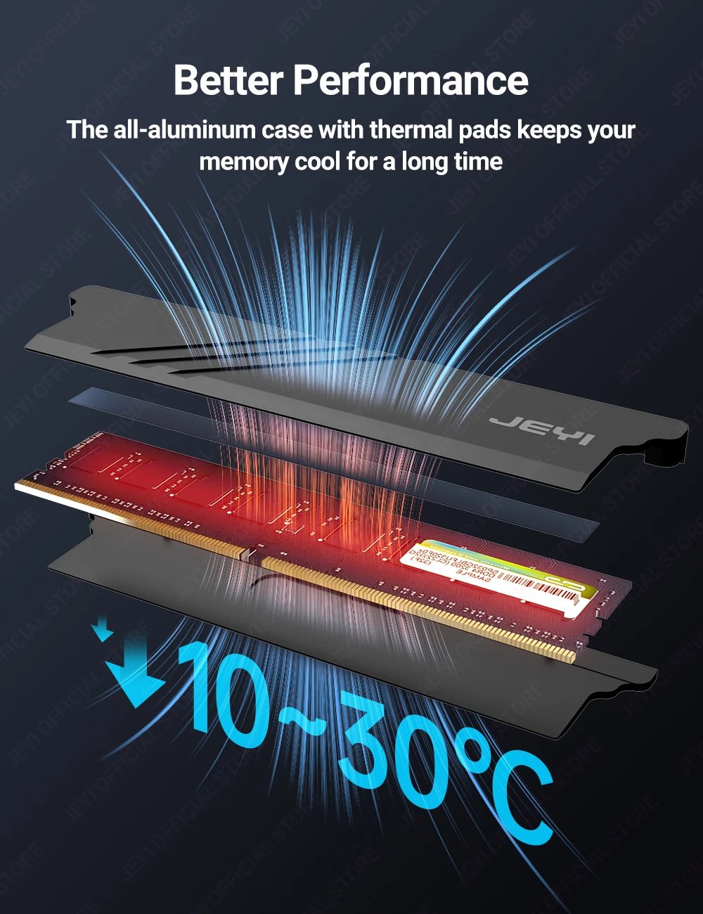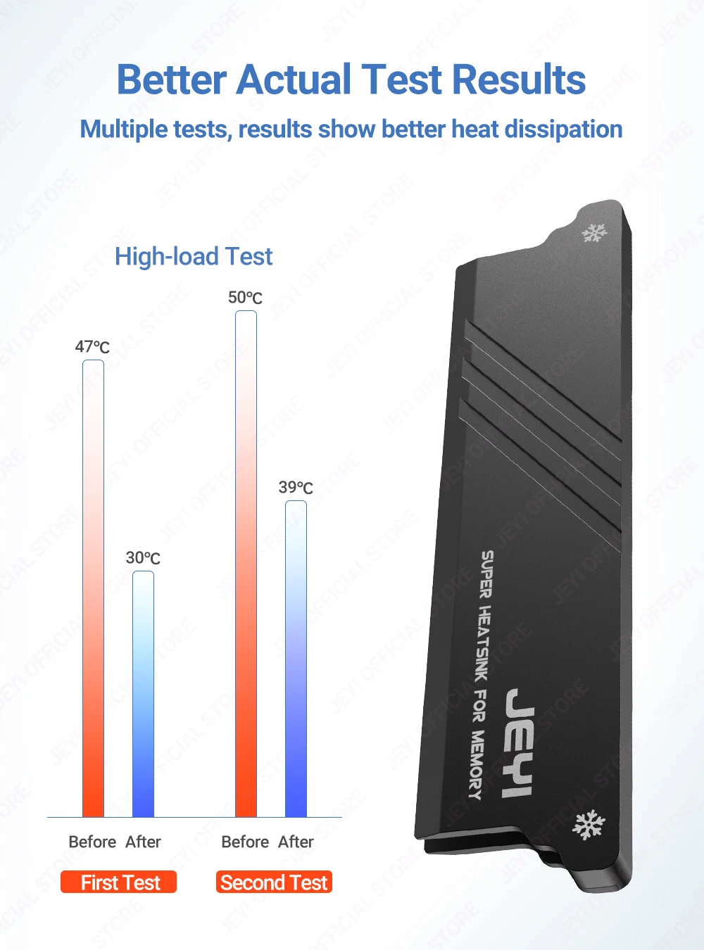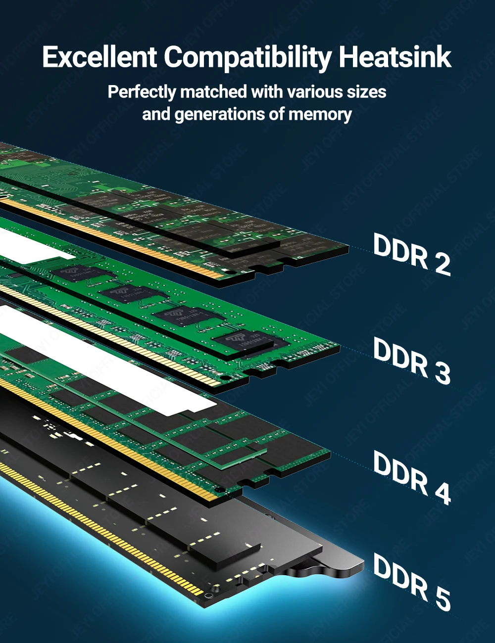 Enfriador universal de disipador de calor de RAM JEYI con almohadillas térmicas: enfriamiento de memoria de alto rendimiento para DDR/DDR2/DDR3/DDR4/DDR5, estabilidad de PC y protección contra sobrecalentamiento