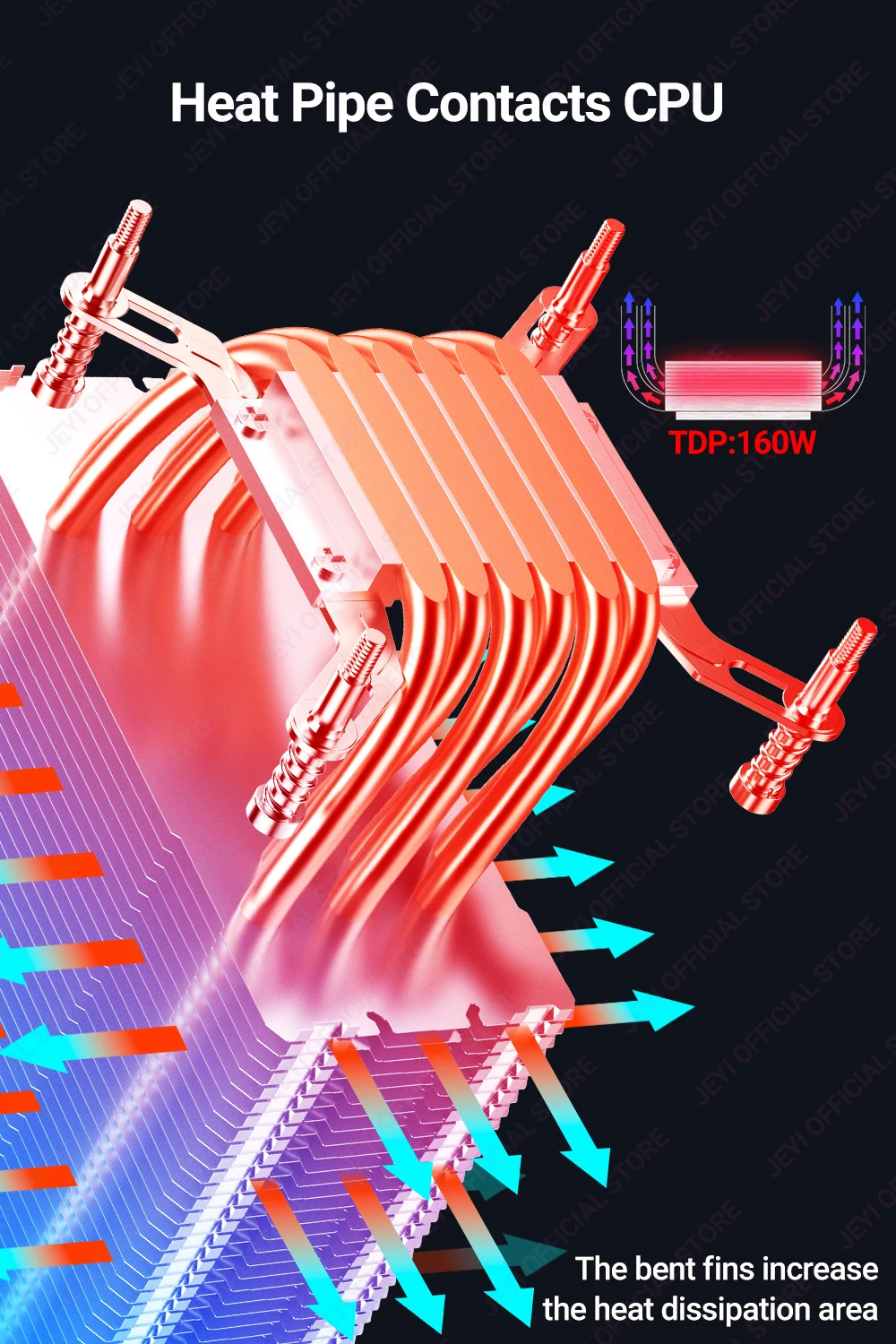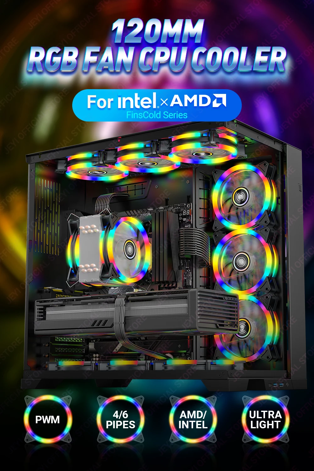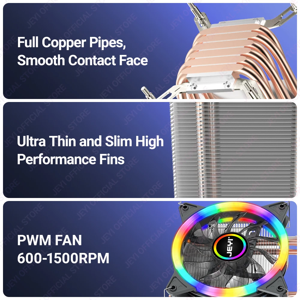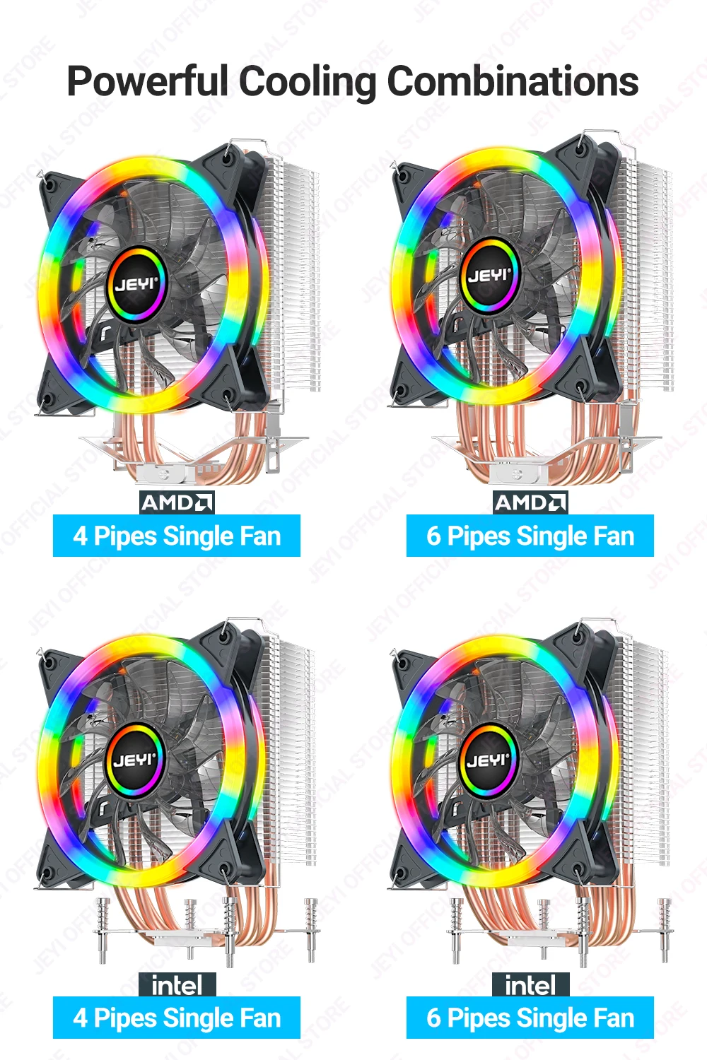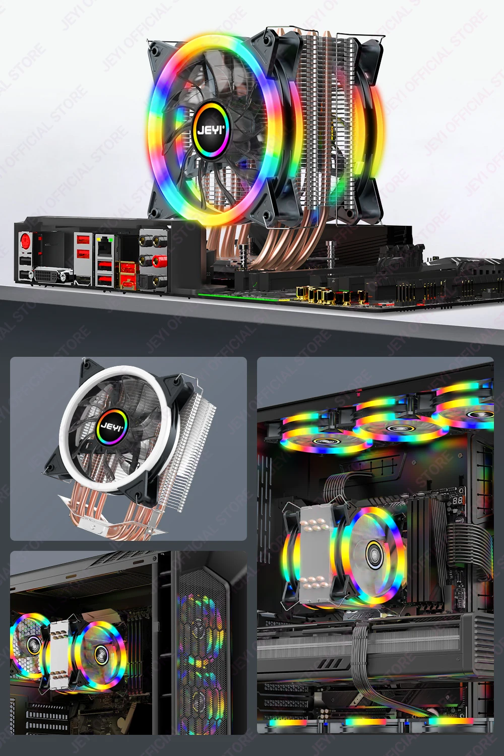 Comprar JEYI RGB CPU Cooler 4/6 tubos de calor radiador de torre de aire PC 12cm ventilador PWM para Intel 1700 1200 1150 1155 1156 1366 2011 AM5 AM4 AM3