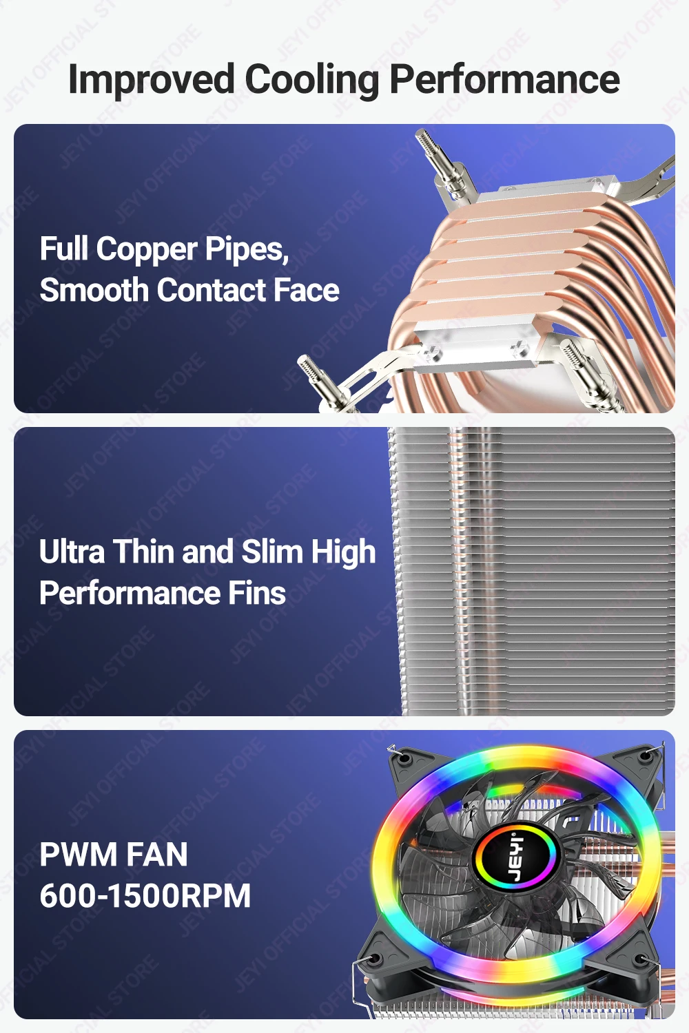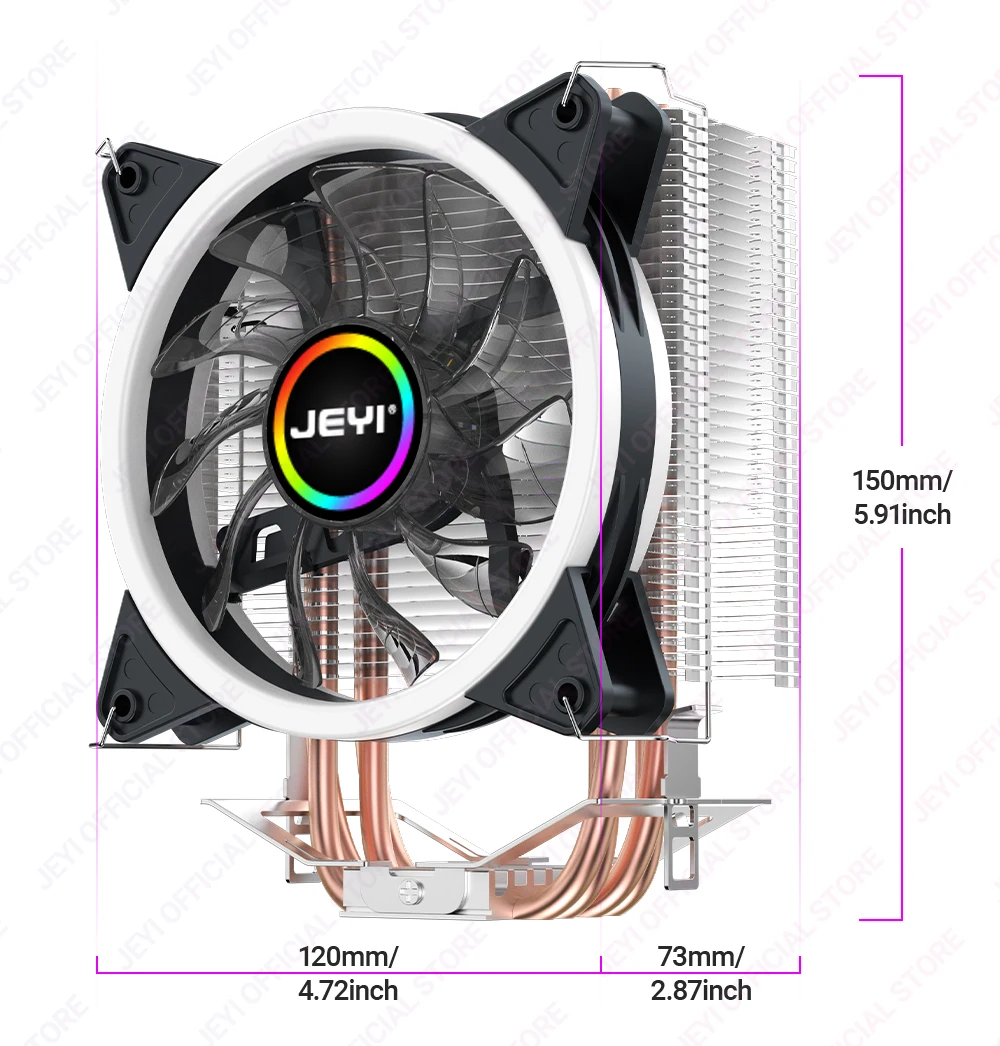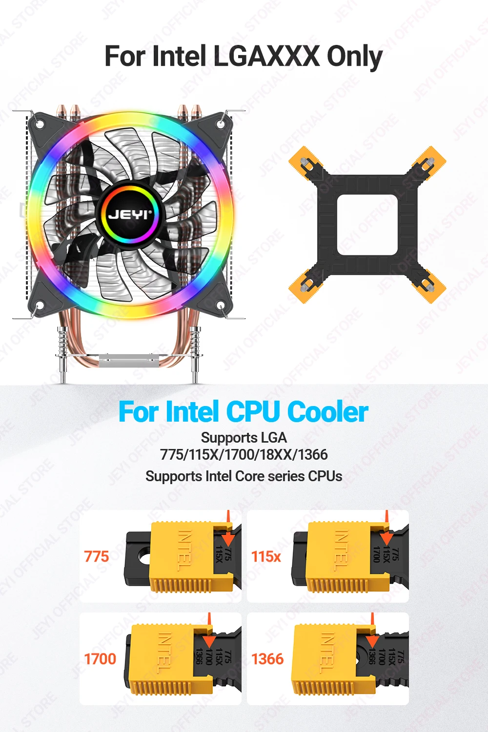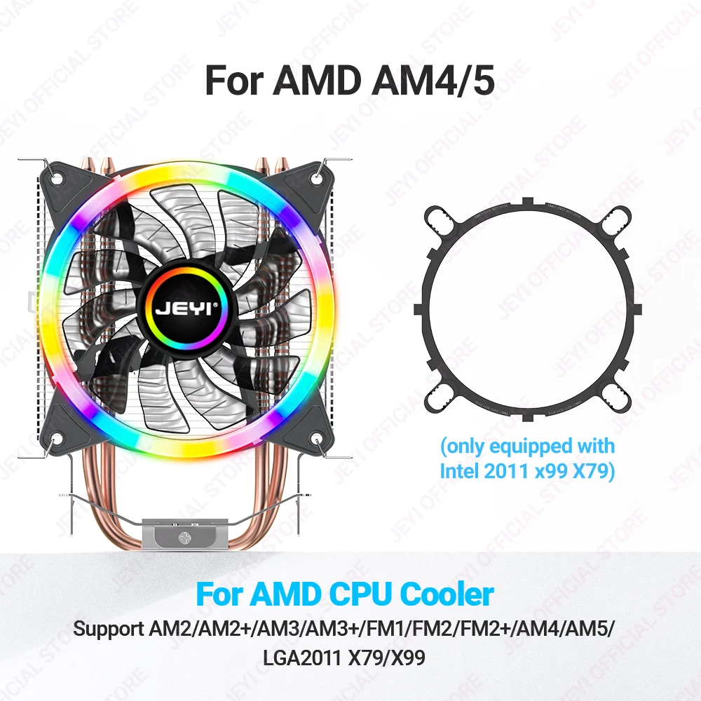 Comprar JEYI RGB CPU Cooler 4/6 tubos de calor radiador de torre de aire PC 12cm ventilador PWM para Intel 1700 1200 1150 1155 1156 1366 2011 AM5 AM4 AM3