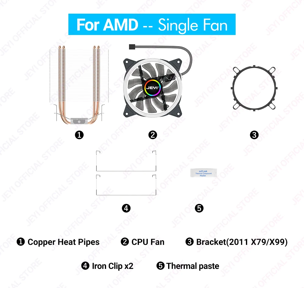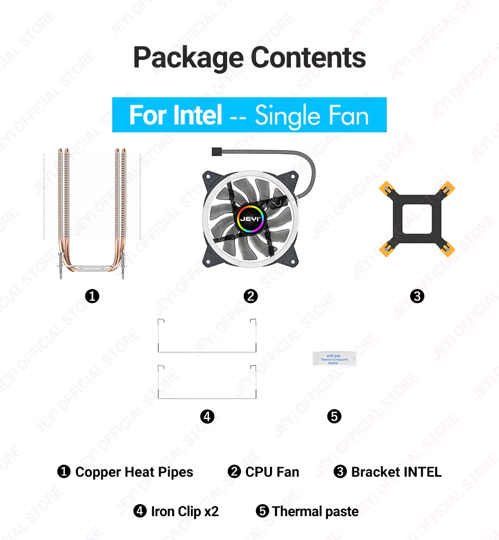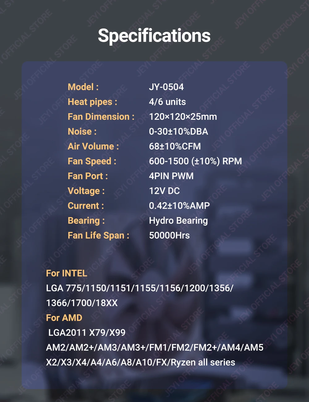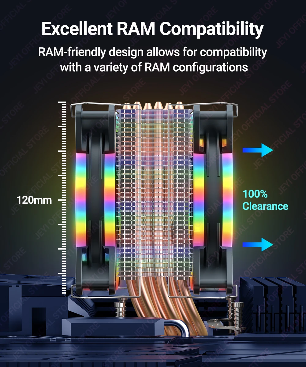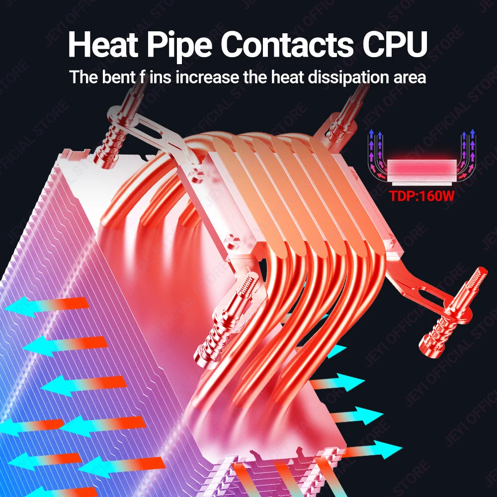 Comprar JEYI RGB CPU Cooler 4/6 tubos de calor radiador de torre de aire PC 12cm ventilador PWM para Intel 1700 1200 1150 1155 1156 1366 2011 AM5 AM4 AM3