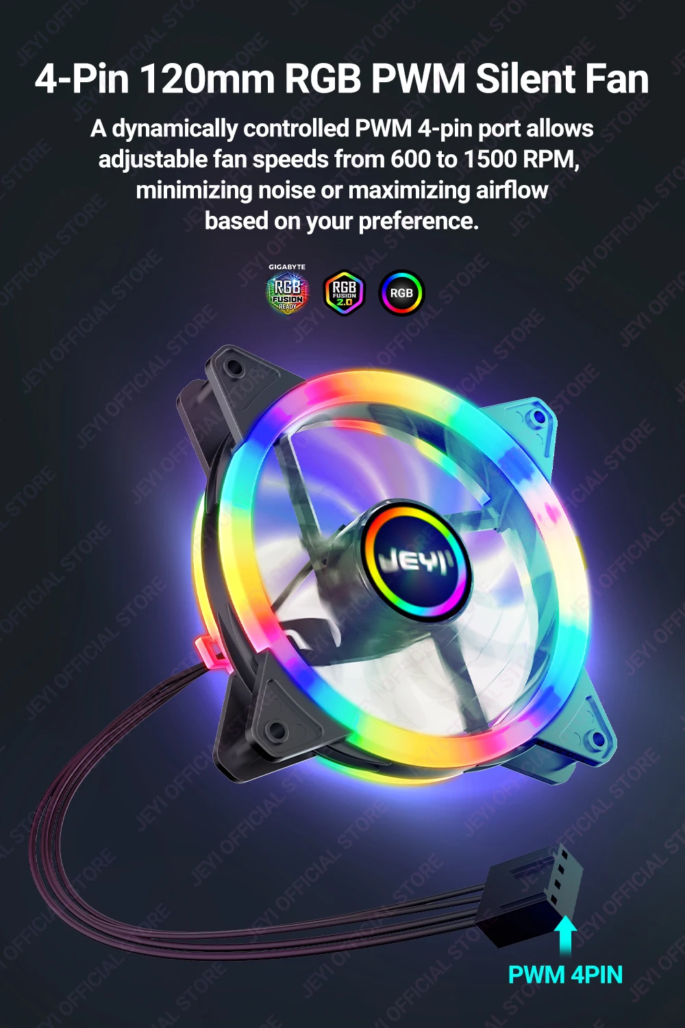 Un cabezal PWM de 4 pines controlado dinámicamente, que permite velocidades de ventilador ajustables entre 600 y 1500 RPM, para minimizar el ruido o maximizar el flujo de aire según sus preferencias y enfriamiento.