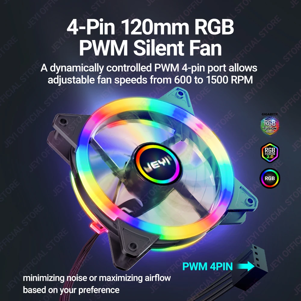 Equipado con una base de silicona y un cojinete de presión de aceite para un funcionamiento silencioso, este ventilador PWM de alta calidad cuenta con 11 aspas grandes para mejorar el flujo de aire y la presión. El Marco de admisión en ángulo comprime el aire para aumentar el volumen de admisión. Aunque el ventilador funciona a baja velocidad, su flujo de aire supera al de la competencia, alcanzando hasta 68 CFM