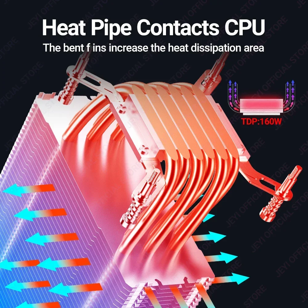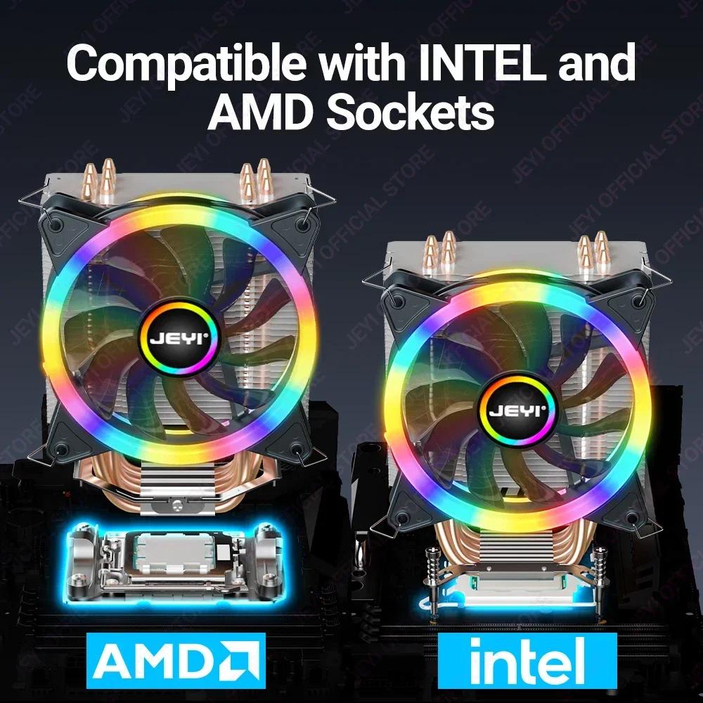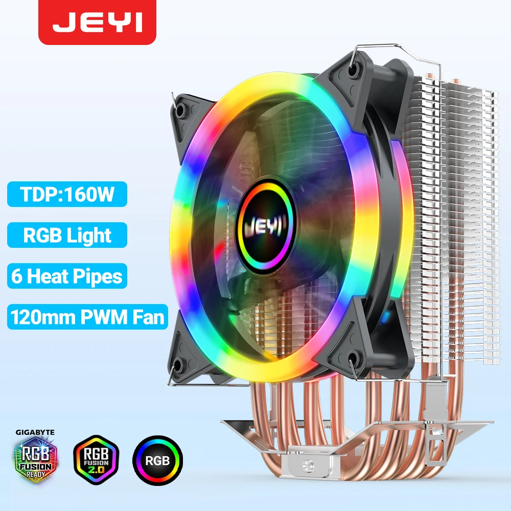Comprar JEYI RGB CPU Cooler 4/6 tubos de calor radiador de torre de aire PC 12cm ventilador PWM para Intel 1700 1200 1150 1155 1156 1366 2011 AM5 AM4 AM3