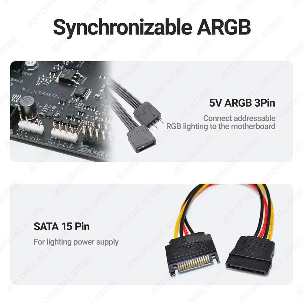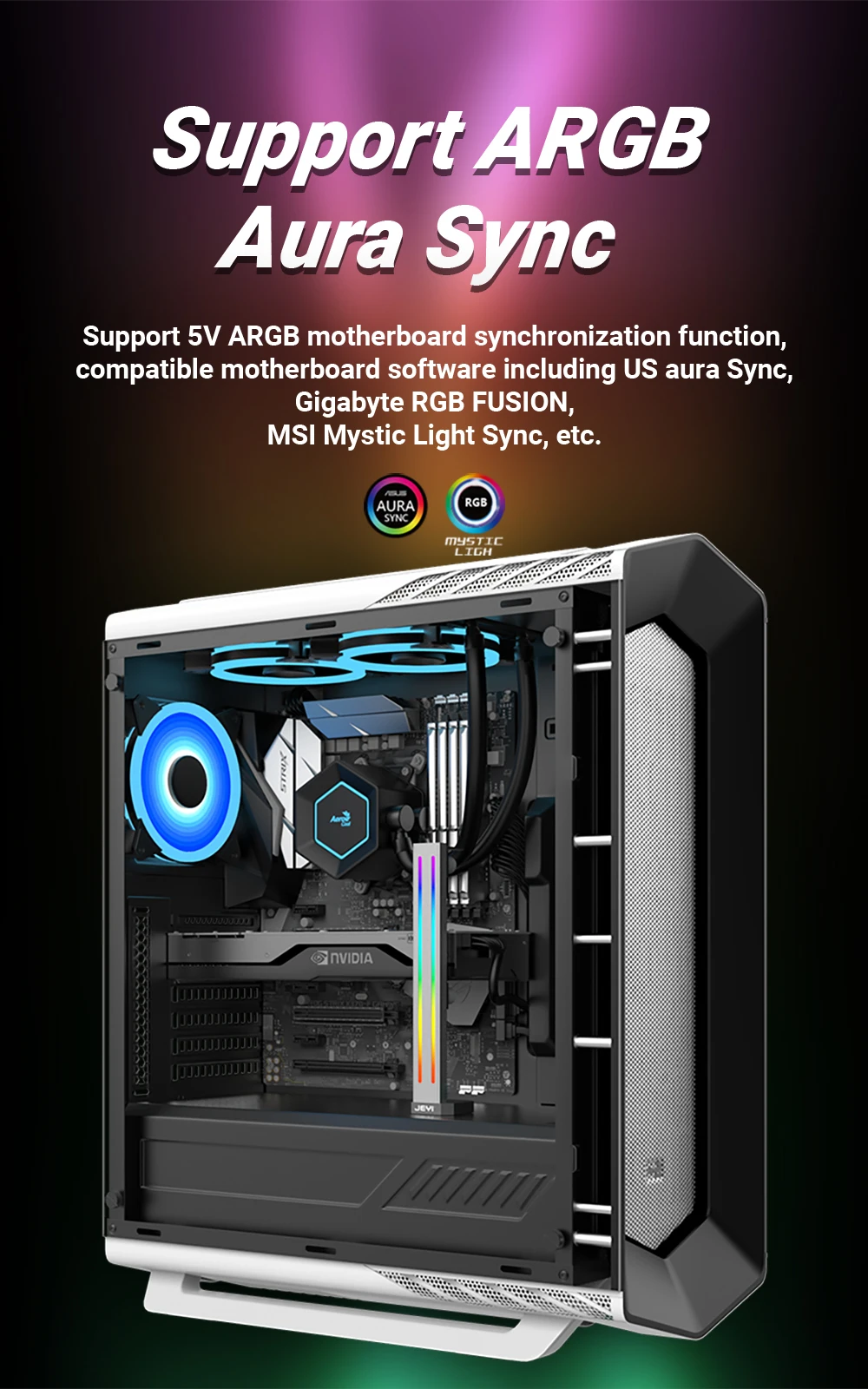 【SINICACIÓN ARGB de 5 V】 Controlado por la placa base, combinado con perlas de lámpara LED brillantes y saturadas, combinado con una carcasa de neón, presenta un modo de efecto de iluminación más deslumbrante (Aura Sync), resaltando la individualidad.