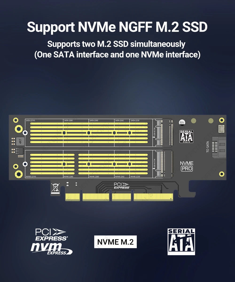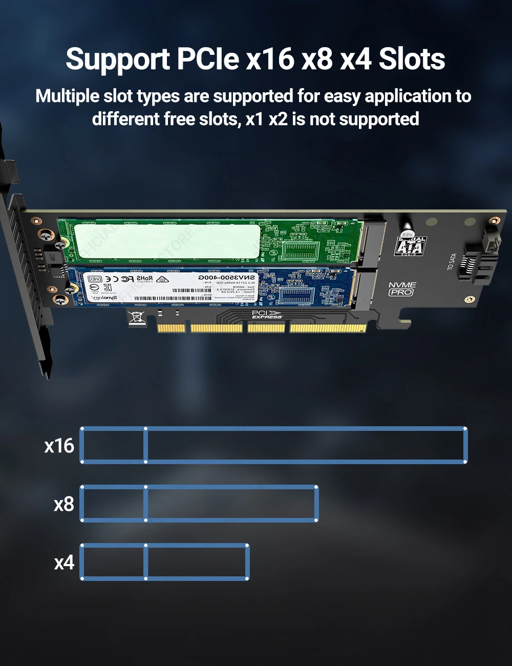 Le recordamos que este adaptador solo admite la ranura PCIe X4 X8X16.NO es compatible con PCIe X1 y ranura PCI.