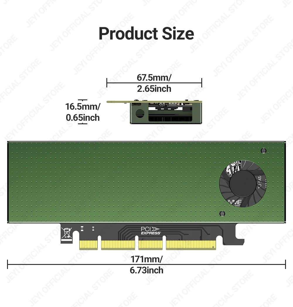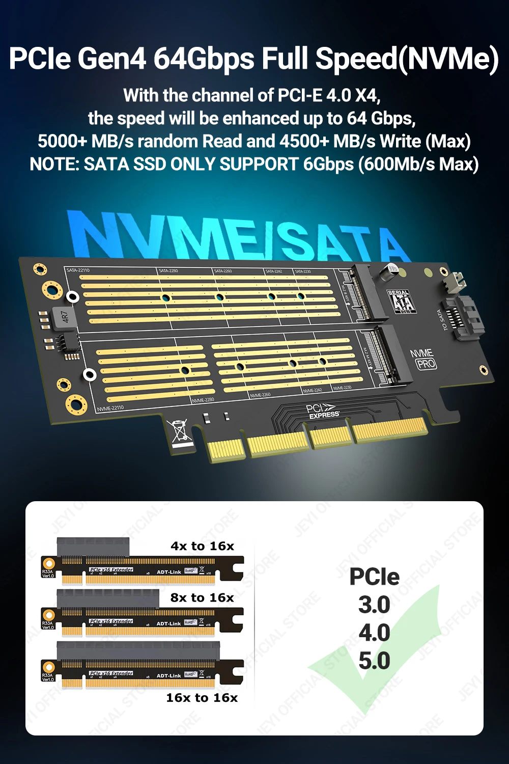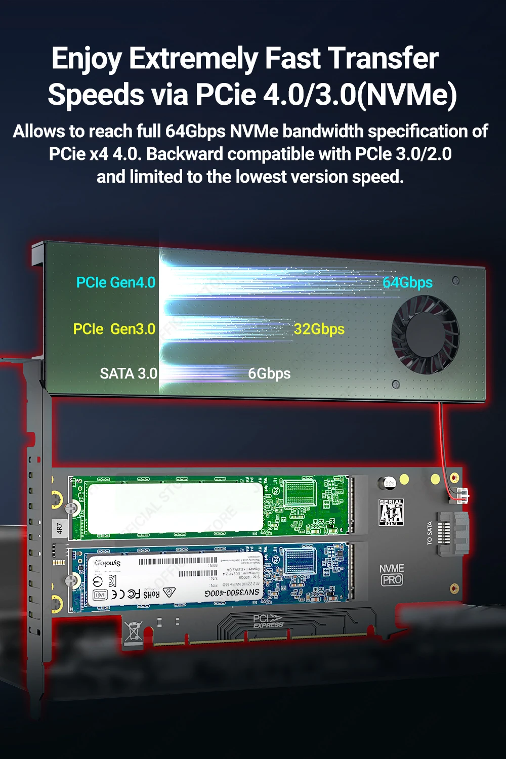 Comprar JEYI SK9 M.2 Adaptador Dual PCIE 4.0 para NVMe / NGFF SSD con ventilador turbo, NVME (tecla m) y ranura SATA (tecla b) SSD a PCIe x4 X8 X16