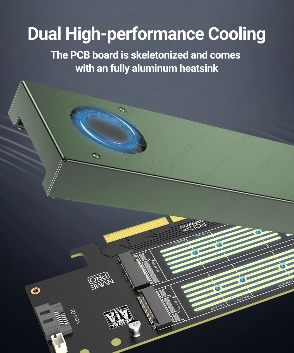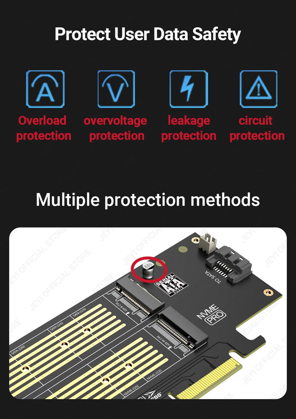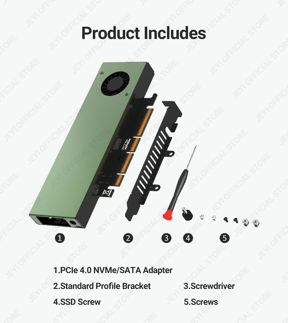 Comprar JEYI SK9 M.2 Adaptador Dual PCIE 4.0 para NVMe / NGFF SSD con ventilador turbo, NVME (tecla m) y ranura SATA (tecla b) SSD a PCIe x4 X8 X16