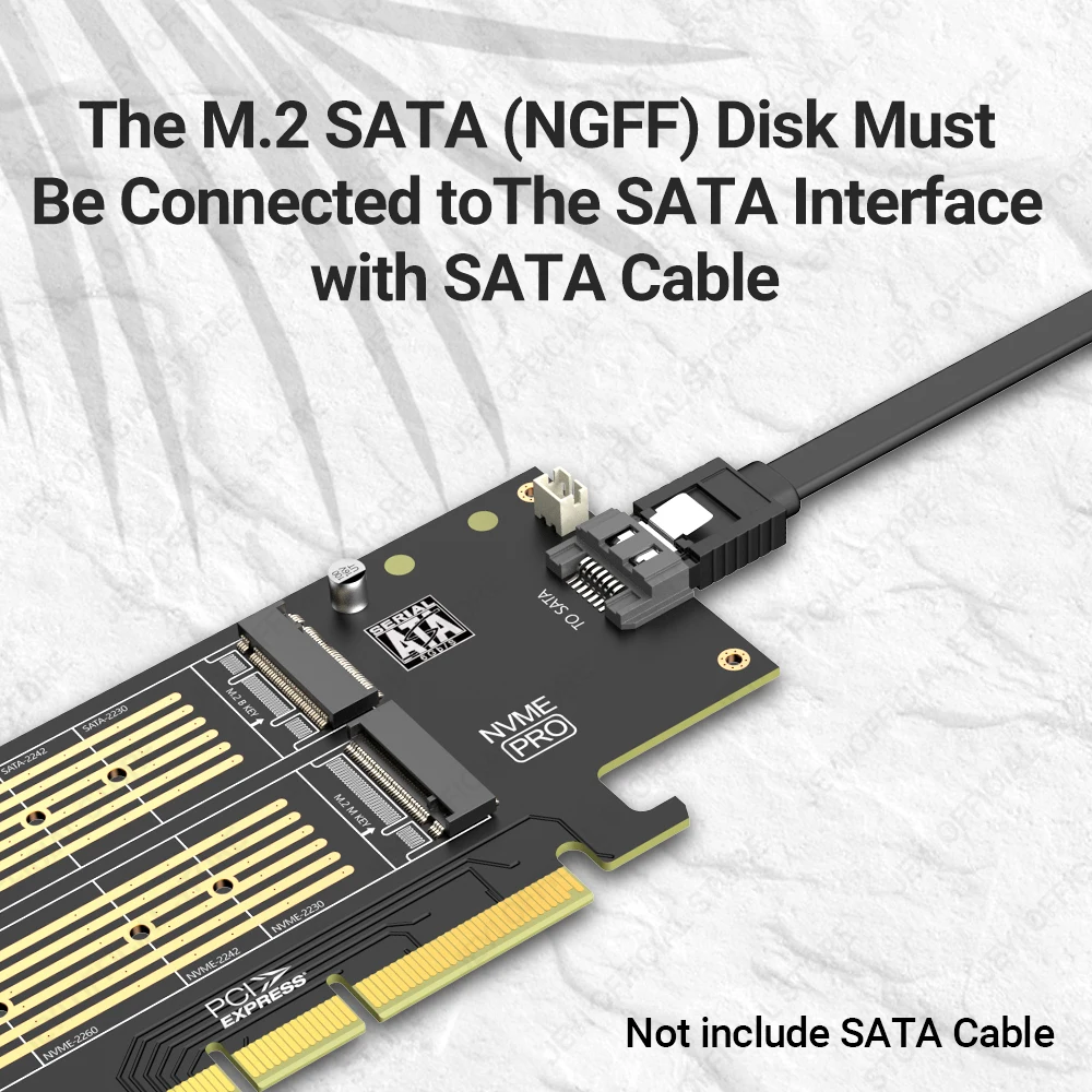 ➤ Convierte una interfaz M.2 NVMe SSD (llave M) en interfaz PCIe 4.0 x4/8/16 (compatible con PCIe 3.0 2.0 1.0), convierte una interfaz M.2 SATA SSD (llave B) en interfaz SATA de 6 Gbps (se requiere conexión de cable SATA). ).