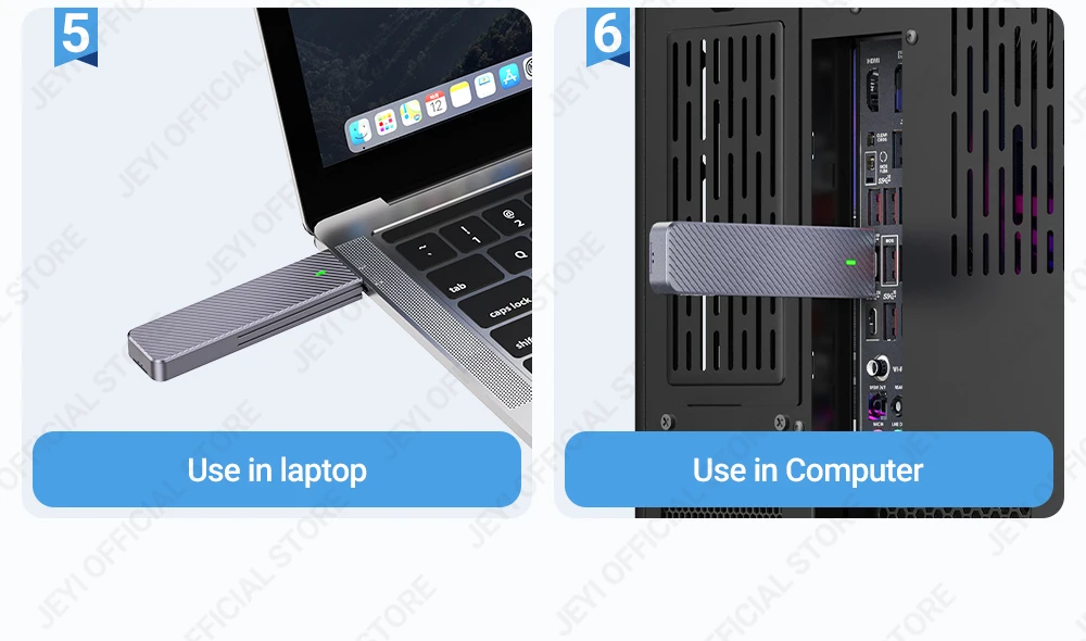 Perfecto para Windows, macOS y Linux, este gabinete JEYI ofrece almacenamiento rápido y portátil mientras viaja.