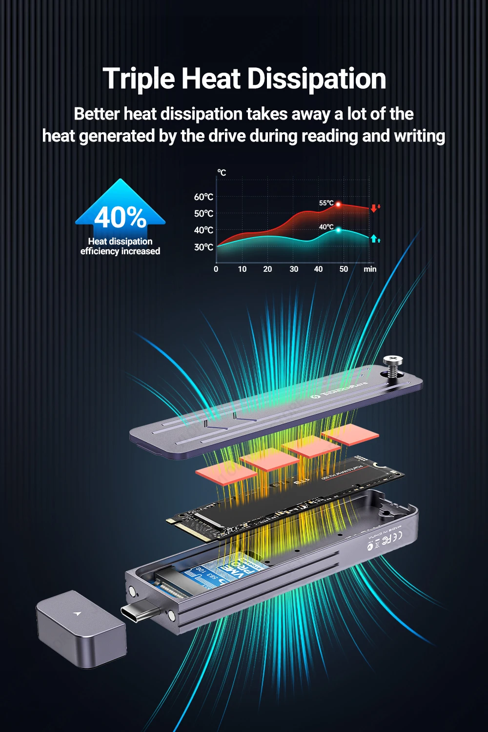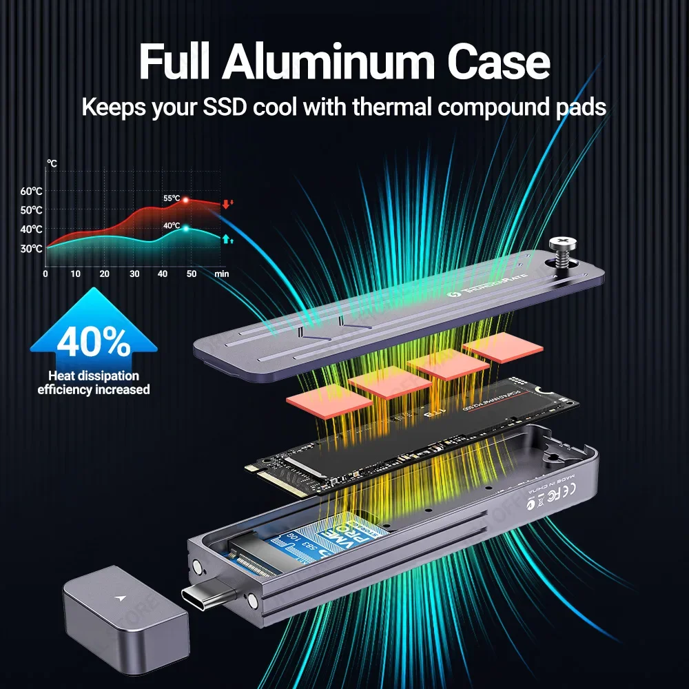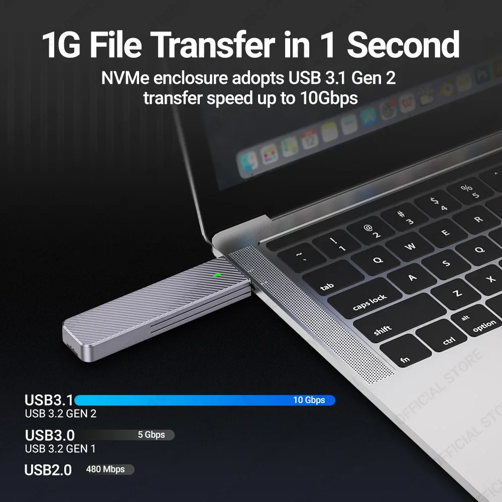 La carcasa NVMe adopta una velocidad de transferencia USB 3.2 Gen 2 de hasta 10 Gbps