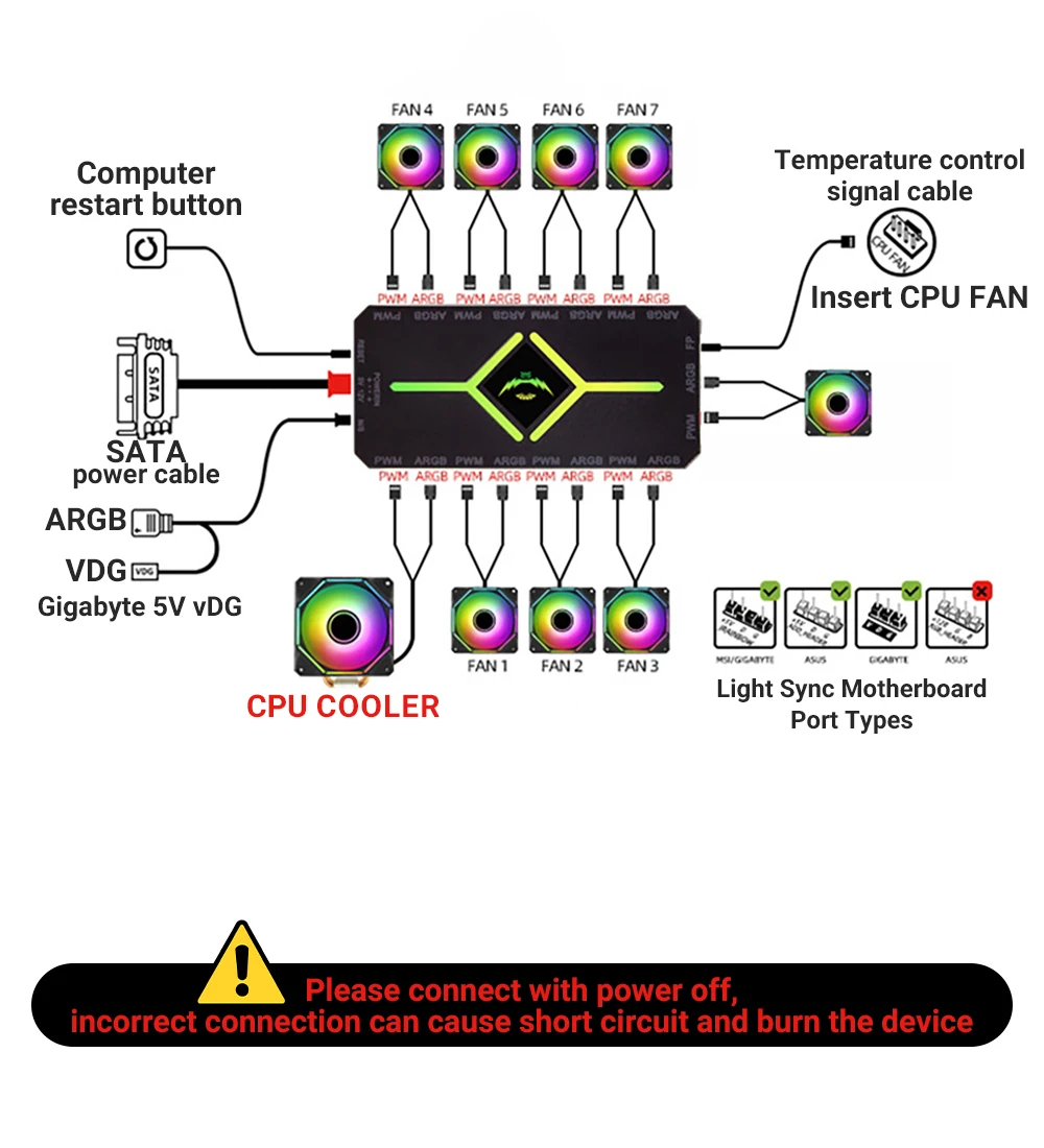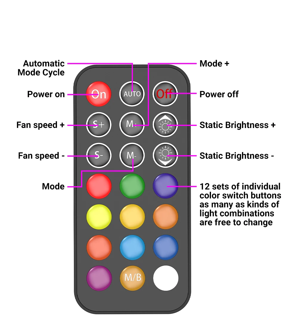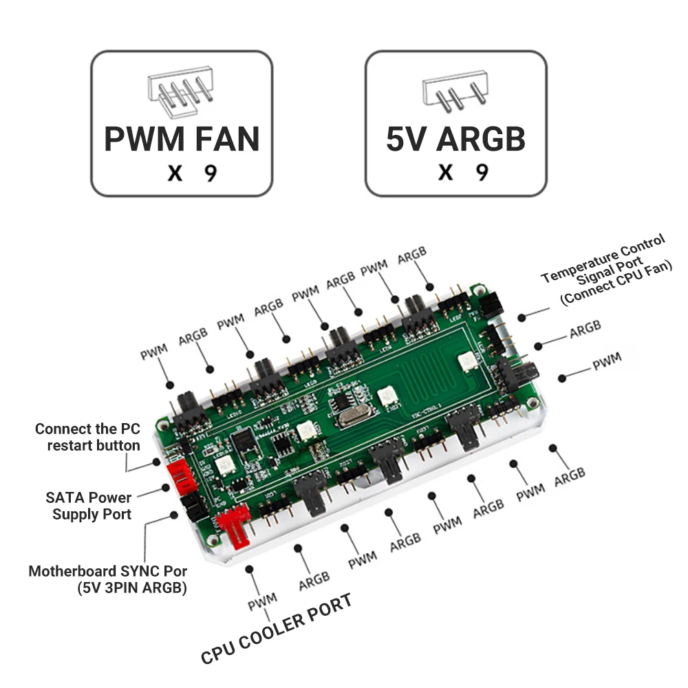 2.Para nuestros valiosos clientes, si su placa base admite una interfaz síncrona de 3 pines 5 V, puede utilizarla para controlar el ventilador directamente desde la placa base.Si su placa base no admite una interfaz síncrona de 3 pines 5v, le recomendamos comprar un controlador separado, que le permitirá controlar los cambios de color del ventilador mediante un control remoto.