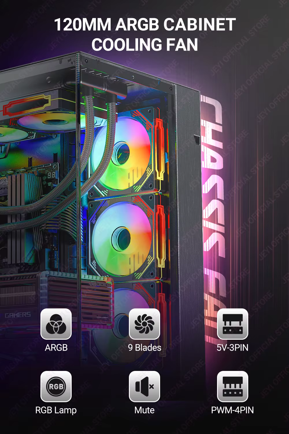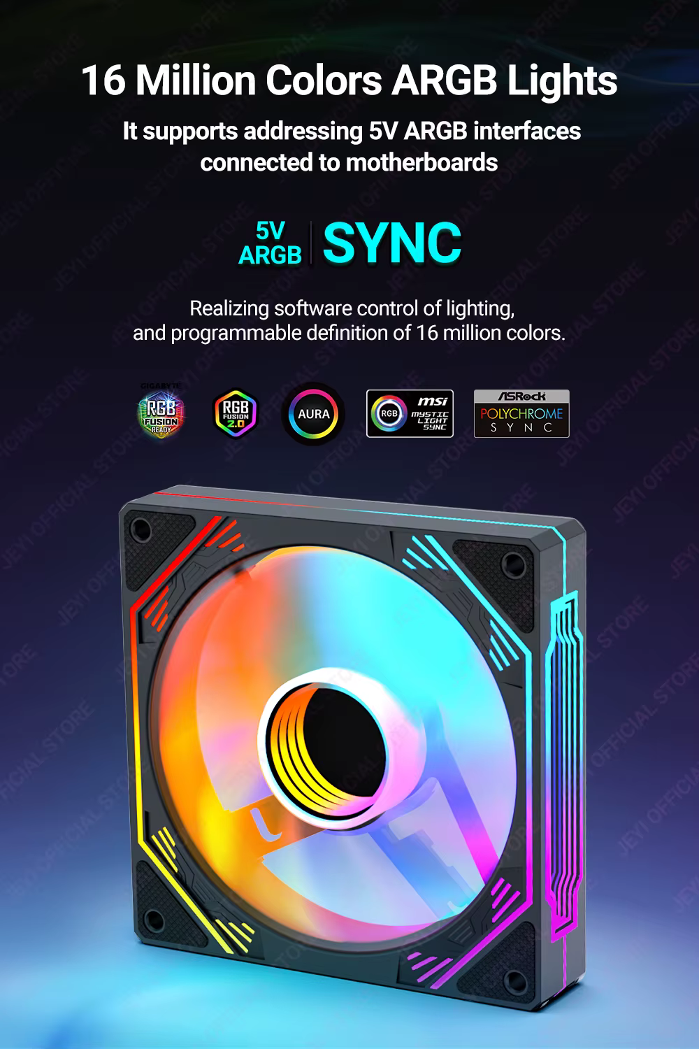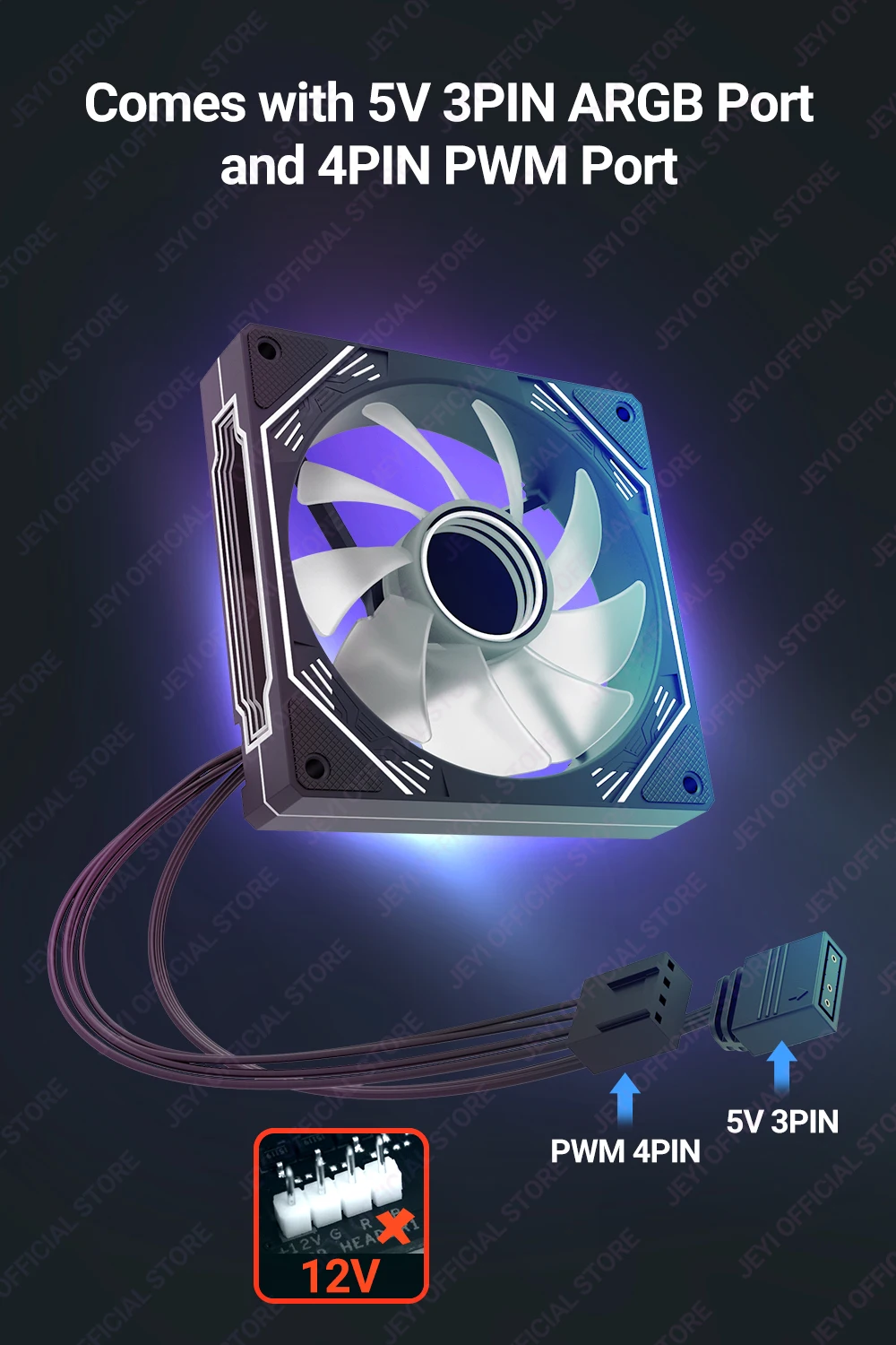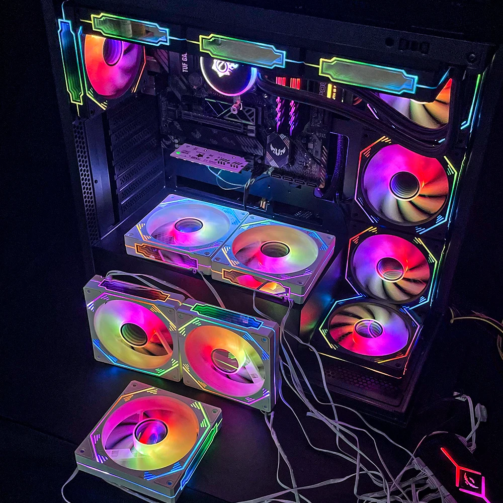 Comprar JEYI-ventilador ARGB de 120mm para PC, disipador de calor Ultra silencioso con 4 pines PWM, 5V, ARGB 3 pines, sincronización direccionable/puerto RC