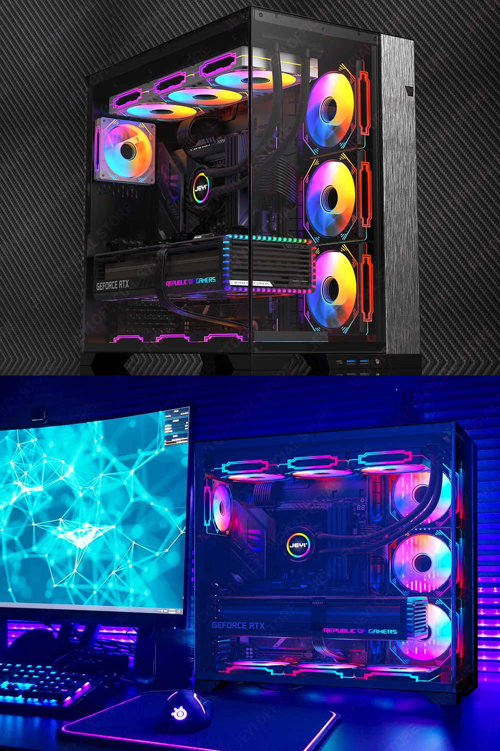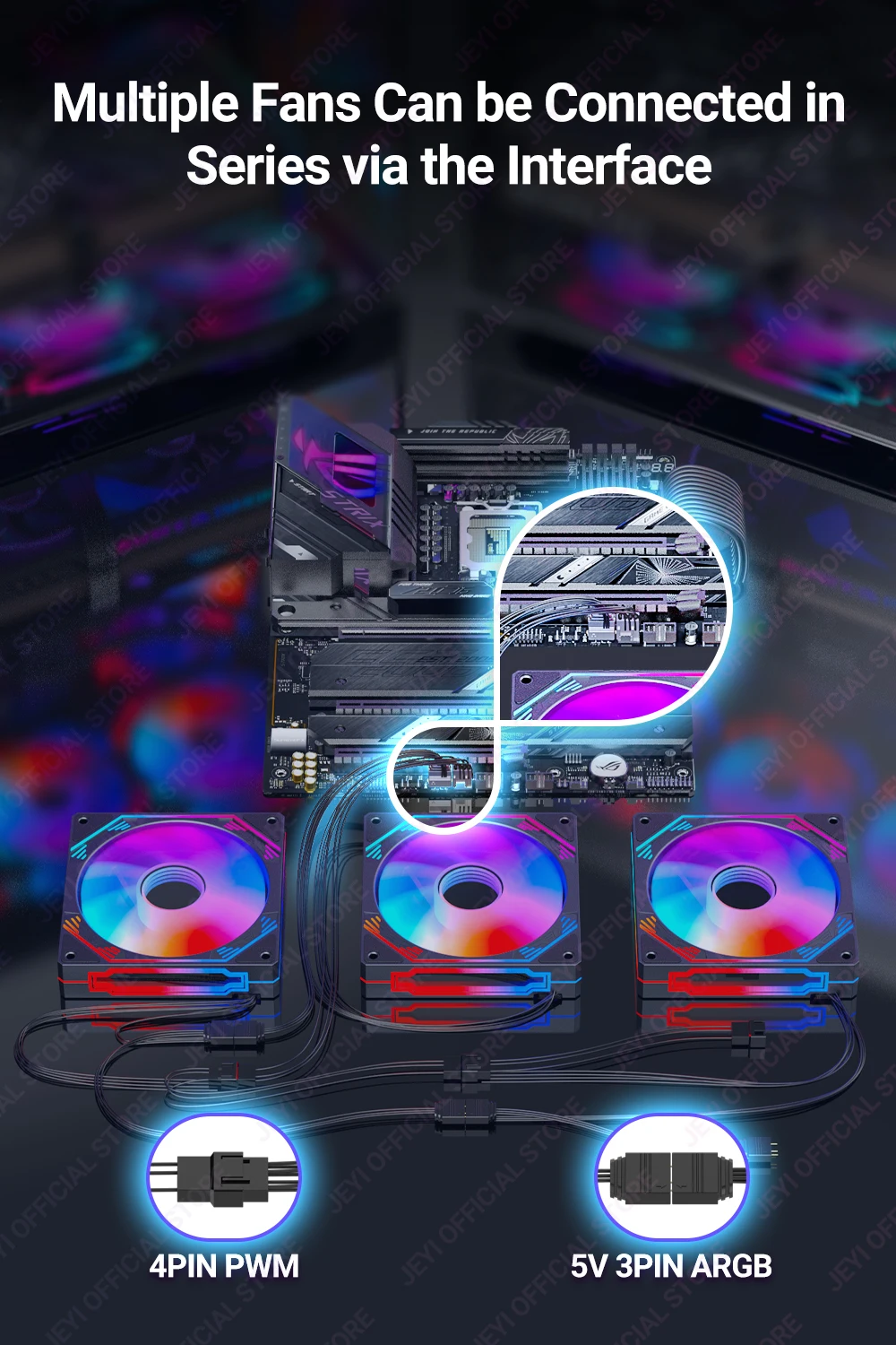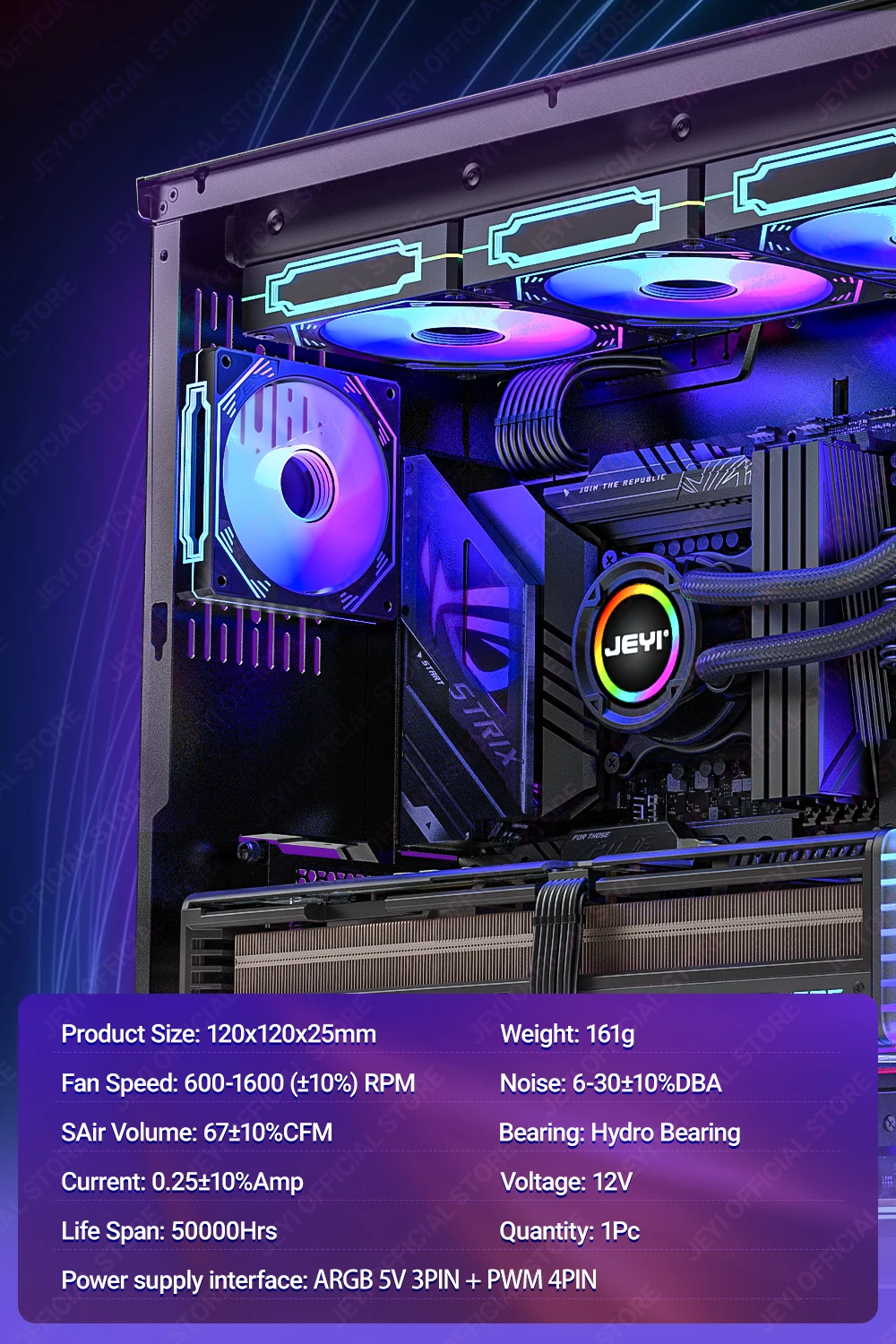 Comprar JEYI-ventilador ARGB de 120mm para PC, disipador de calor Ultra silencioso con 4 pines PWM, 5V, ARGB 3 pines, sincronización direccionable/puerto RC