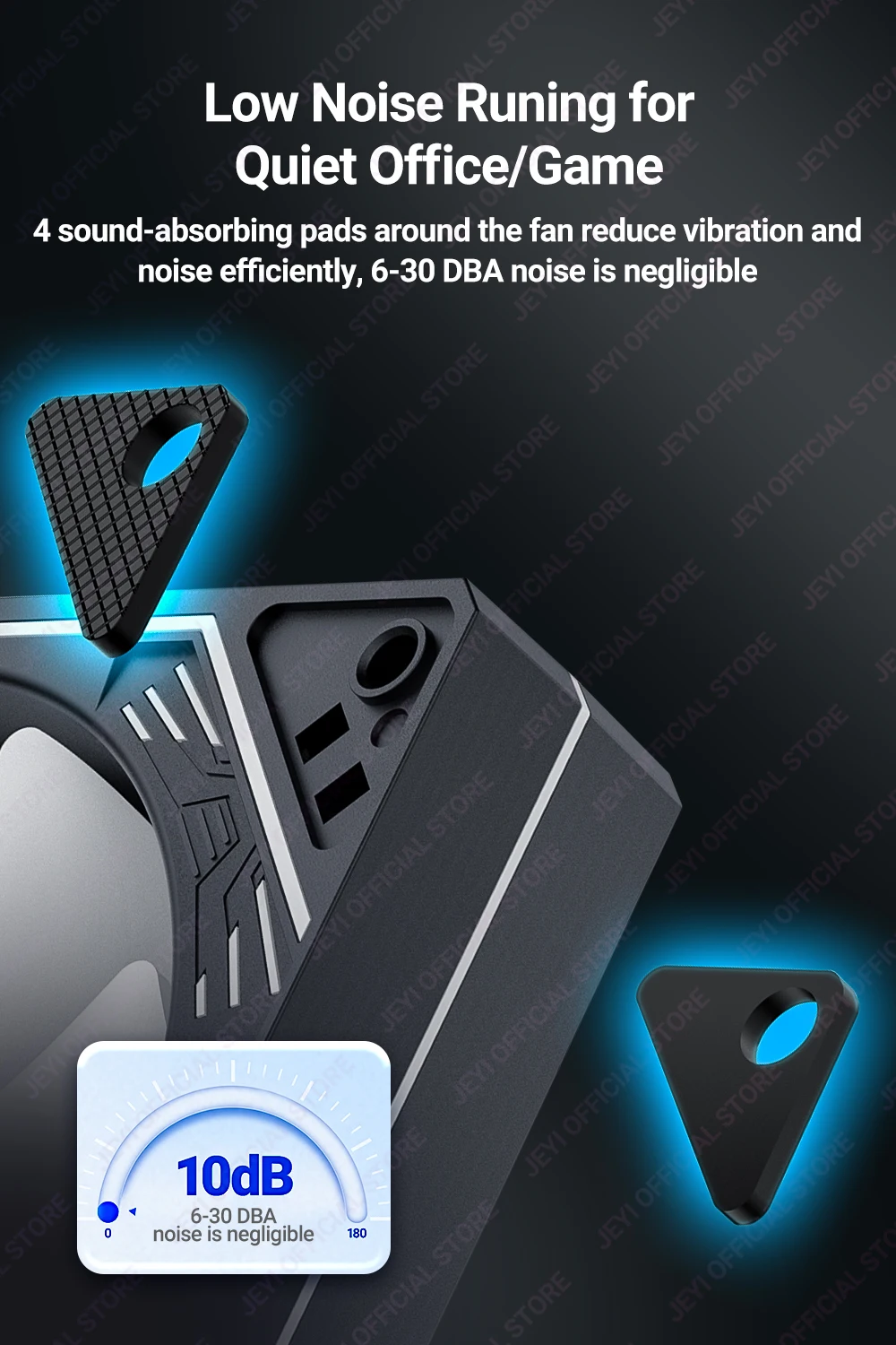 4 almohadillas insonorizadas alrededor del ventilador reducen la vibración y el ruido de manera eficiente, 6-30 ± 10% de ruido DBA es insignificante