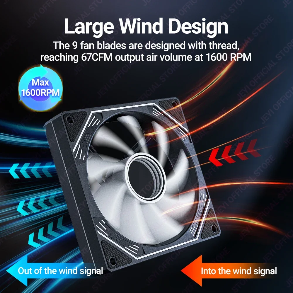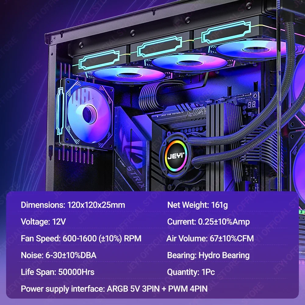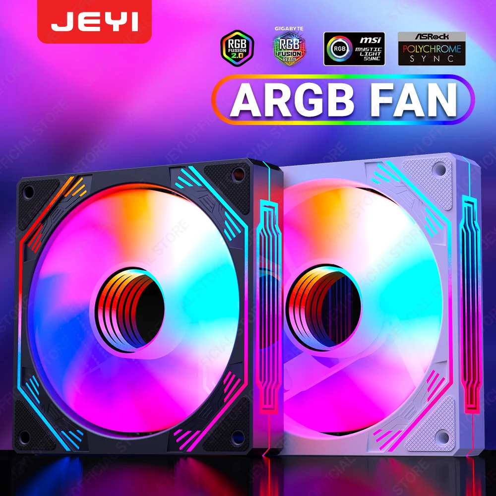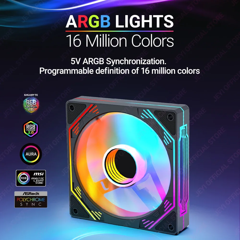 Comprar JEYI-ventilador ARGB de 120mm para PC, disipador de calor Ultra silencioso con 4 pines PWM, 5V, ARGB 3 pines, sincronización direccionable/puerto RC