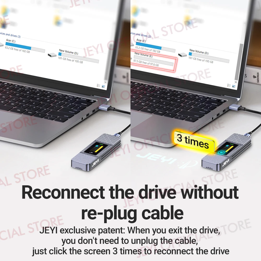 Patente exclusiva JEYI: Al salir de la unidad, no es necesario desconectar el cable, simplemente haga clic en la pantalla 3 veces para volver a conectar la unidad.