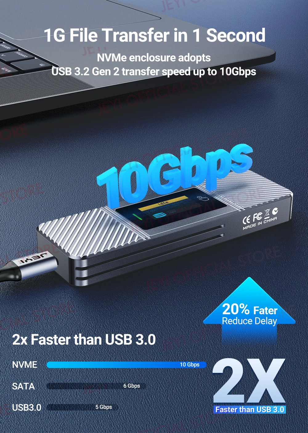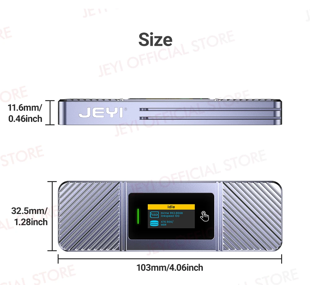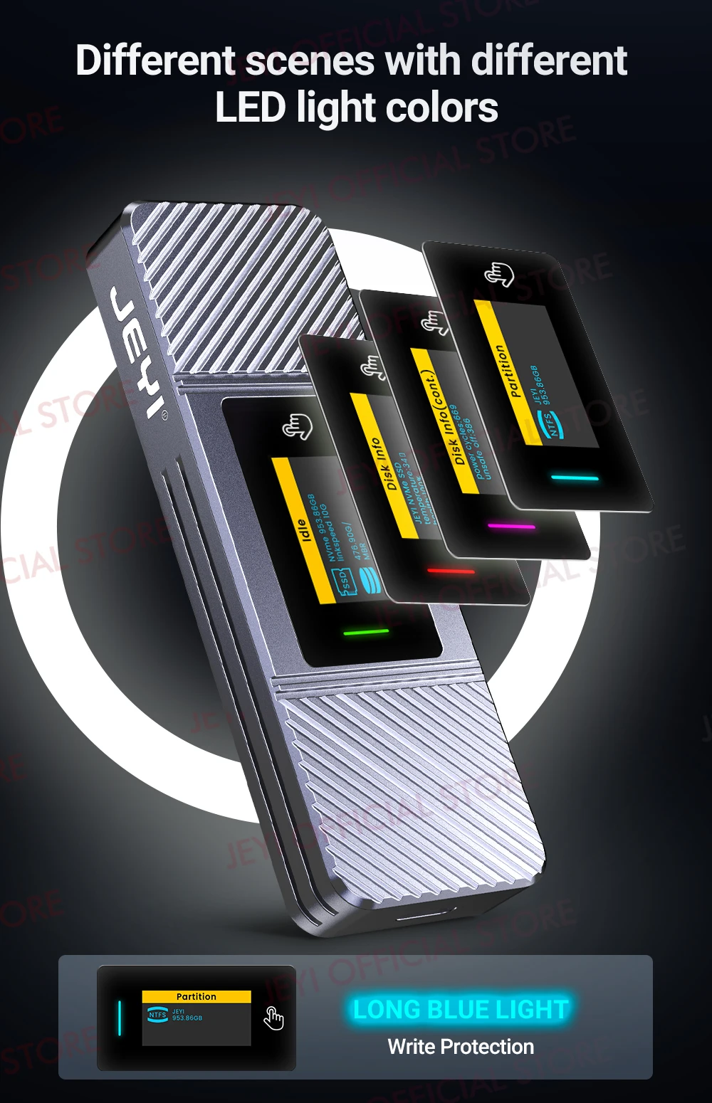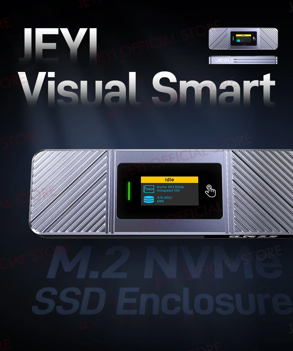 JEYI i9X-Zebra pantalla visual Dual protocolo M.2 NVMe NGFF SSD gabinete