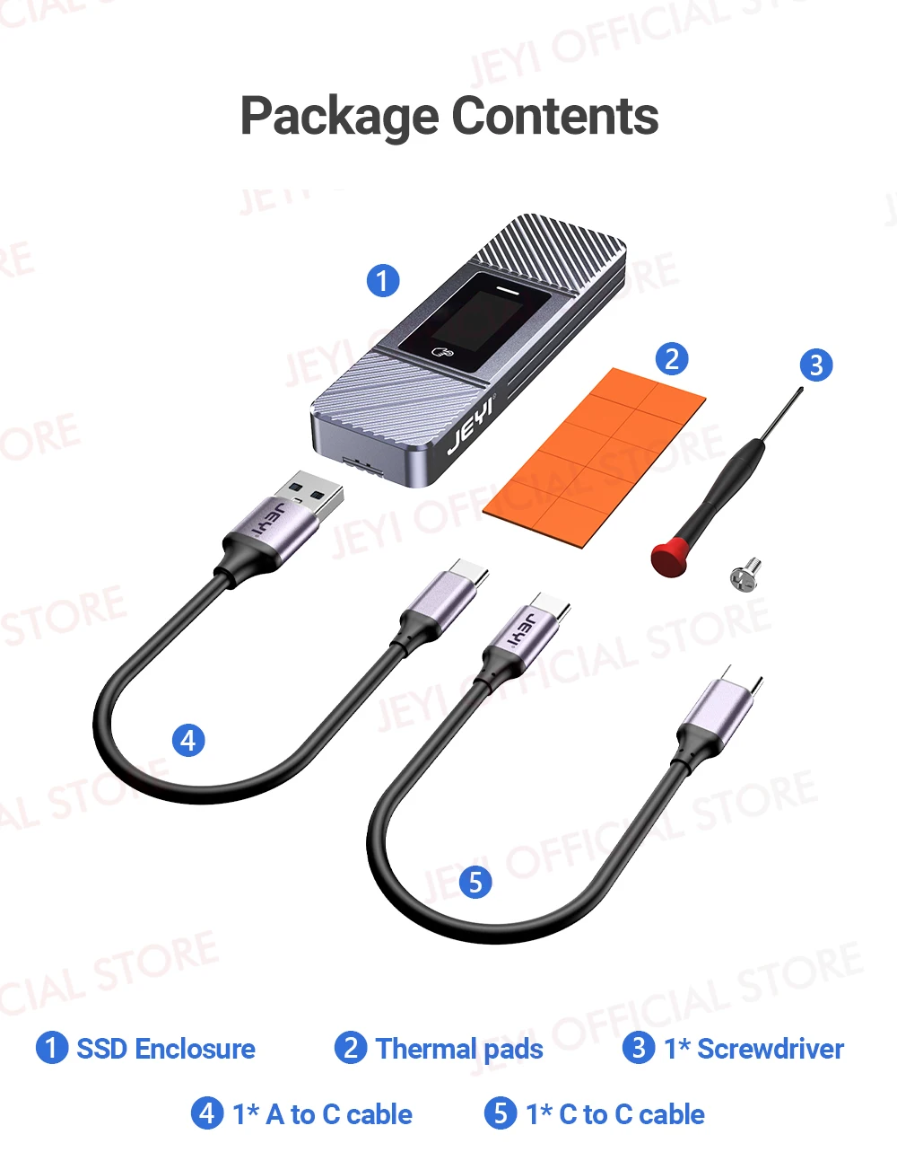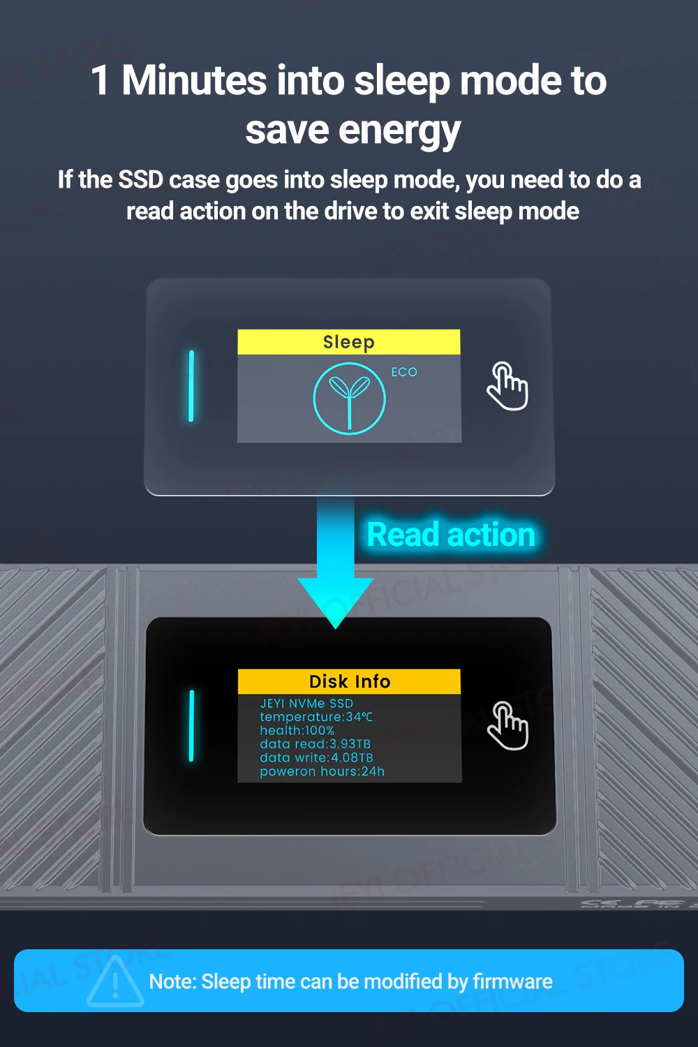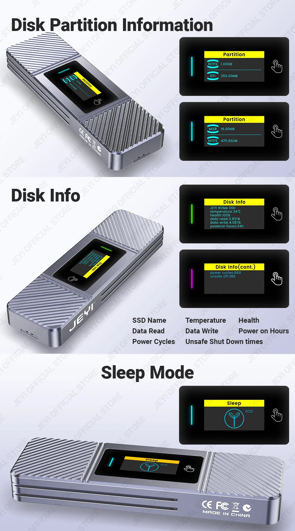 JEYI i9X-Zebra pantalla visual Dual protocolo M.2 NVMe NGFF SSD gabinete