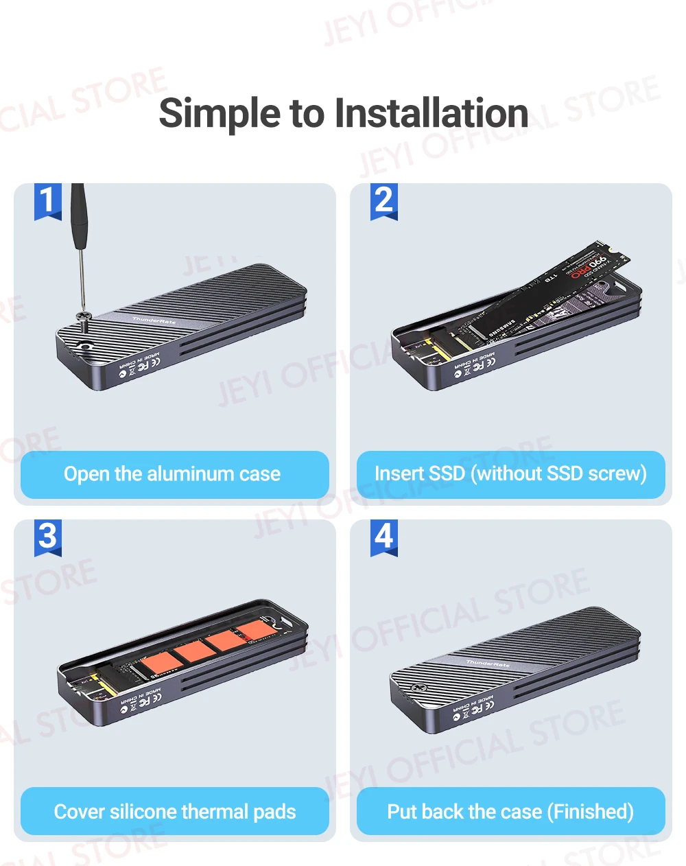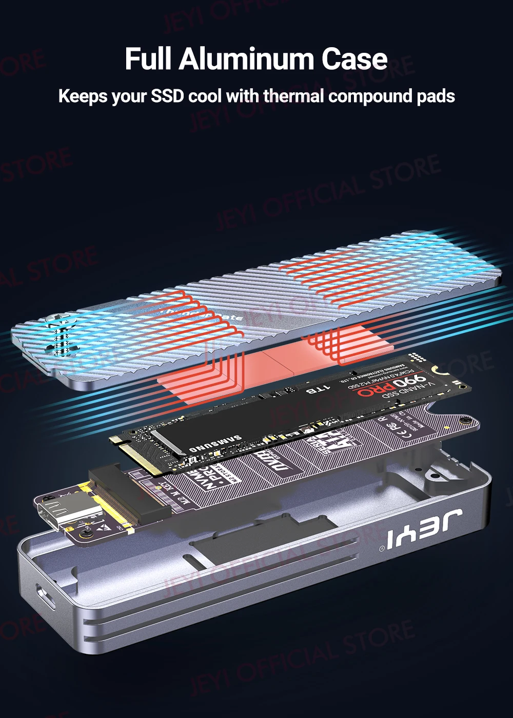 JEYI insiste en utilizar la almohadilla de conductividad térmica superconductora de alto costo y el método de disipación de calor totalmente de aluminio para evitar que el disco se "coche" en la carcasa y reducir la vida útil del disco.