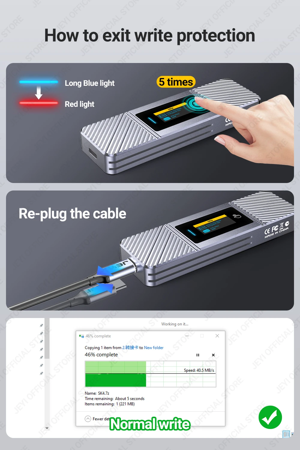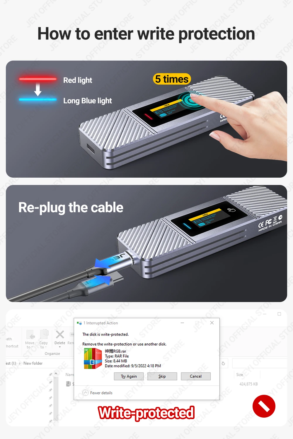 Comprar JEYI Visual Smart M.2 NVMe NGFF SSD, compatible con protección de escritura 5s, reconexión 3s, USB 3,2 Gen2 10Gbps, embellecedor UASP
