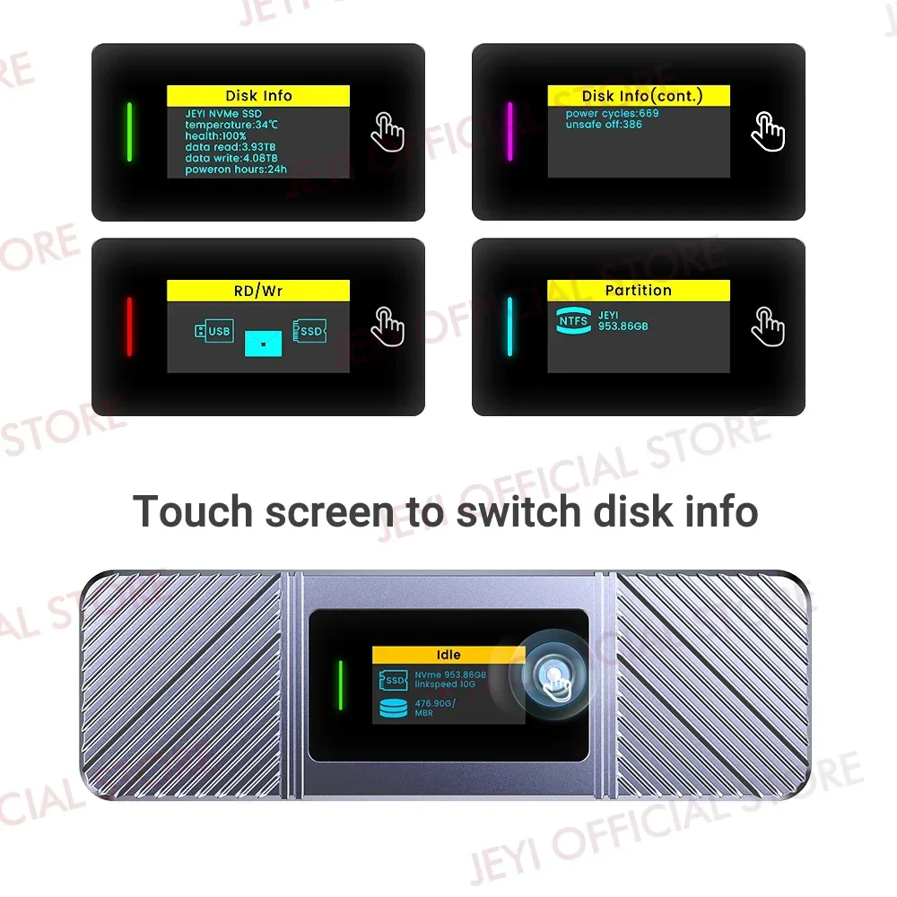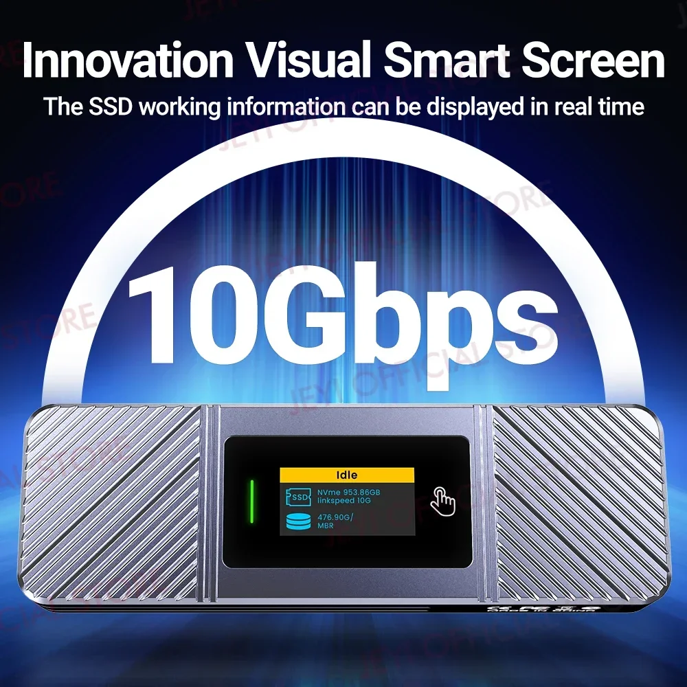 JEYI i9X-Zebra pantalla visual Dual protocolo M.2 NVMe NGFF SSD gabinete