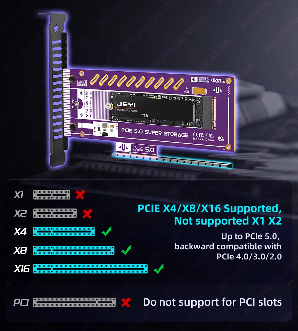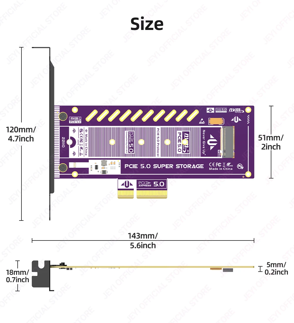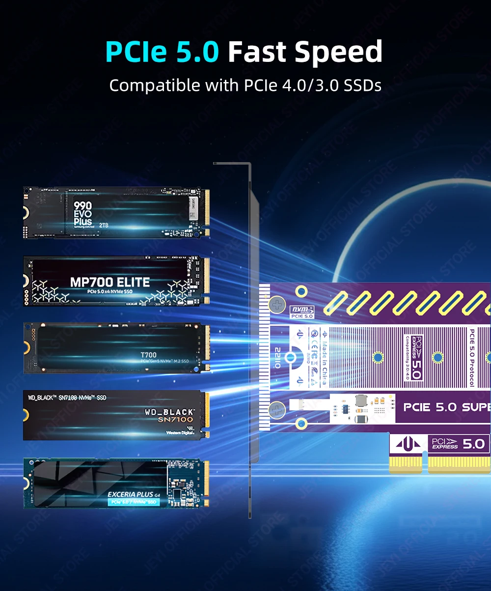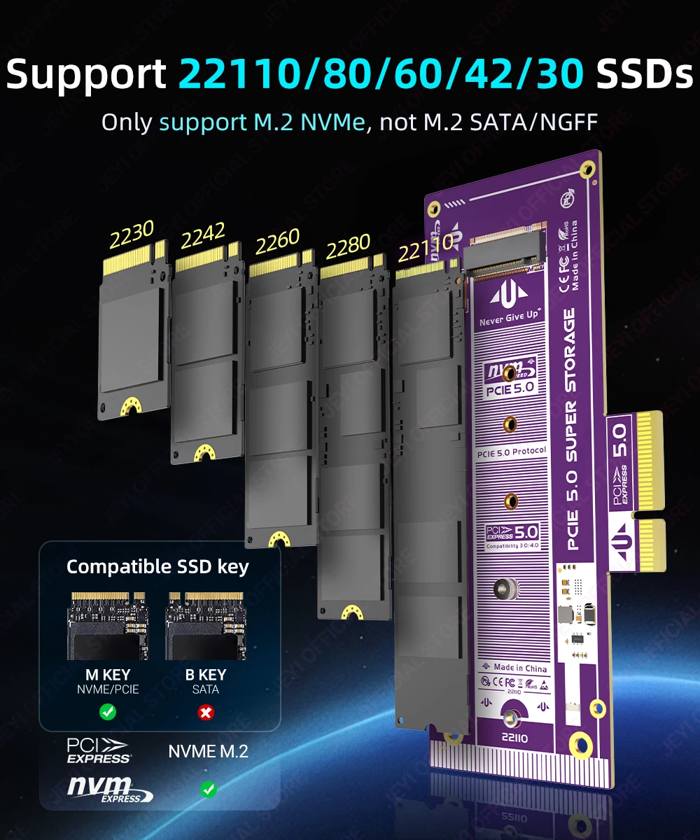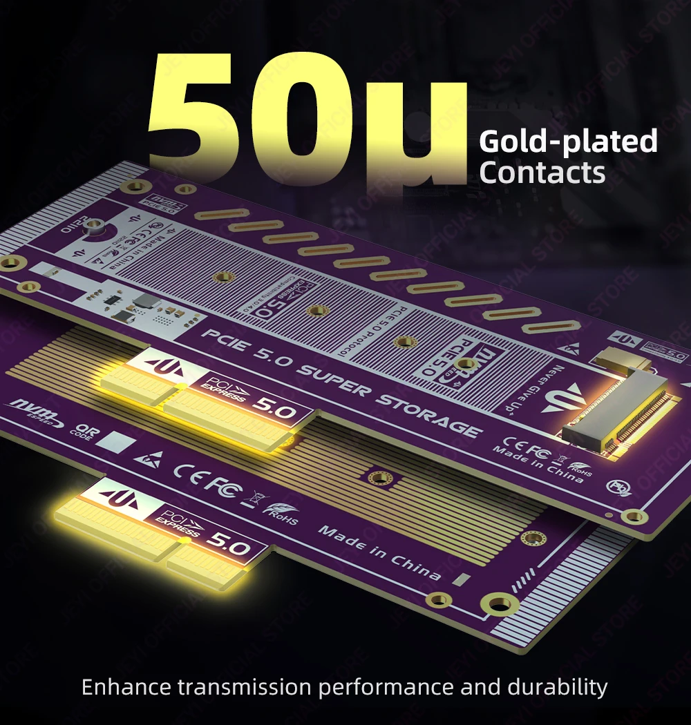 Adaptador JEYI PCIe 5.0 M.2 NVMe | Ultra velocidad de 128 Gbps | Se adapta a compatibilidad con SSD NVMe 22110/2280/2260/2242/2230